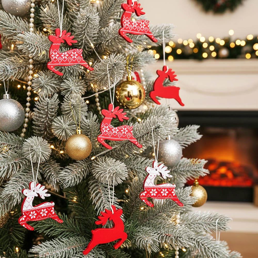 Setul de ornamente din lemn este perfect pentru cei care apreciază stilurile simple și naturale. Ornamentele din lemn au un aspect cu adevărat pitoresc. Din ambalaj vor ieși în întâmpinarea voastră 12 reni frumos pictați, care vor îmbrăca bradul vostru într-o haină naturală și simplă. Ornamentele din lemn nu ies niciodată din modă și nu se deteriorează. Natura va fi mereu în armonie cu interiorul vostru. Vă vor rezista ani de zile, și spre deosebire de ornamentele din sticlă, nu se sparg. Astfel, puteți decora bradul de Crăciun cu copiii fără teama unor accidente neplăcute. Fiecare ren are o sfoară cu bilă pentru a fi agățat. Acum tot ce trebuie să faceți este să decorați bradul de Crăciun sau crenguțele din vază. Vă veți crea o decorație de Crăciun simplă, dar fermecătoare și eternă!