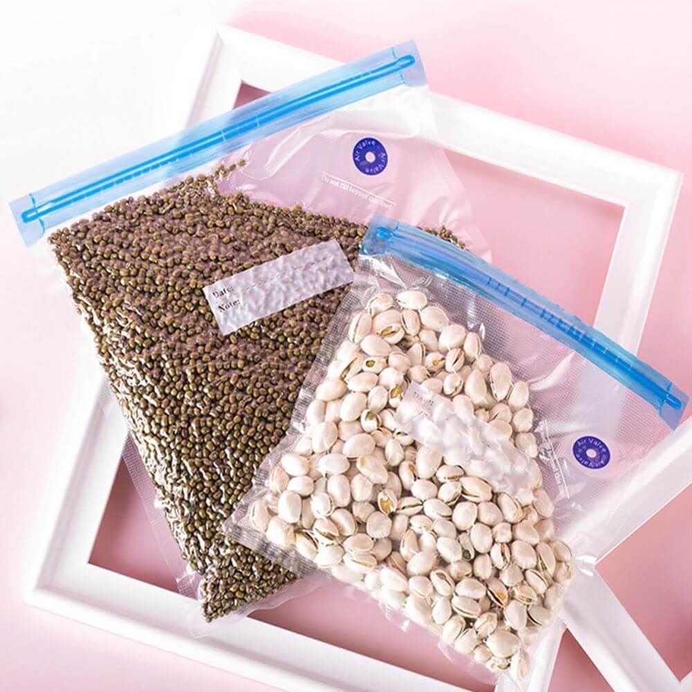 Alimentele rămân proaspete mai mult timp, suculente și nu se vor usca. Datorită pungilor veți economisi și o mulțime de spațiu. Le puteți umple și cu alimente vrac, este alegerea dumneavoastră. Pungile pot fi etichetate cu un marker, astfel încât veți menține ordinea în frigider sau congelator.