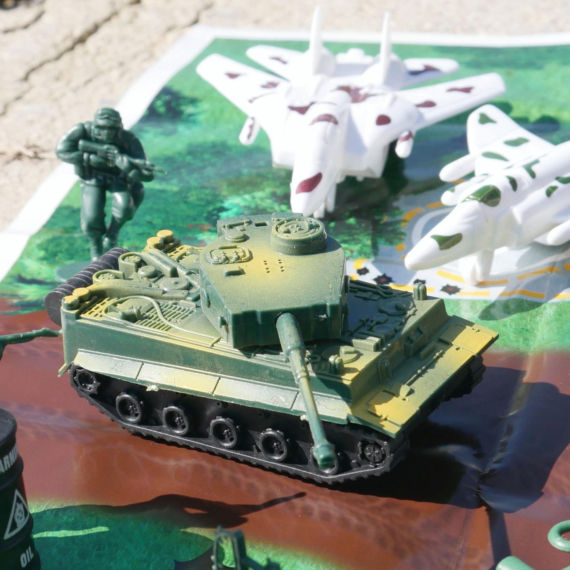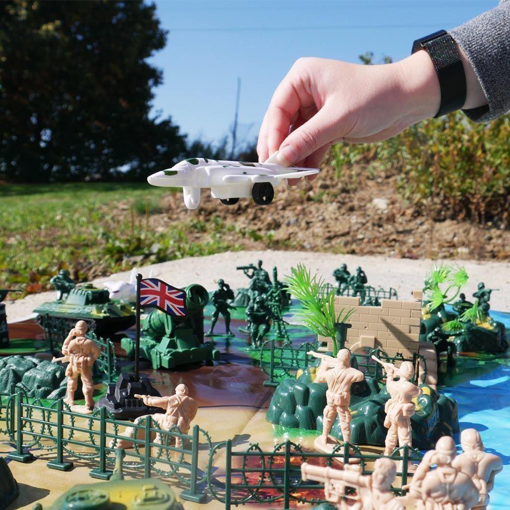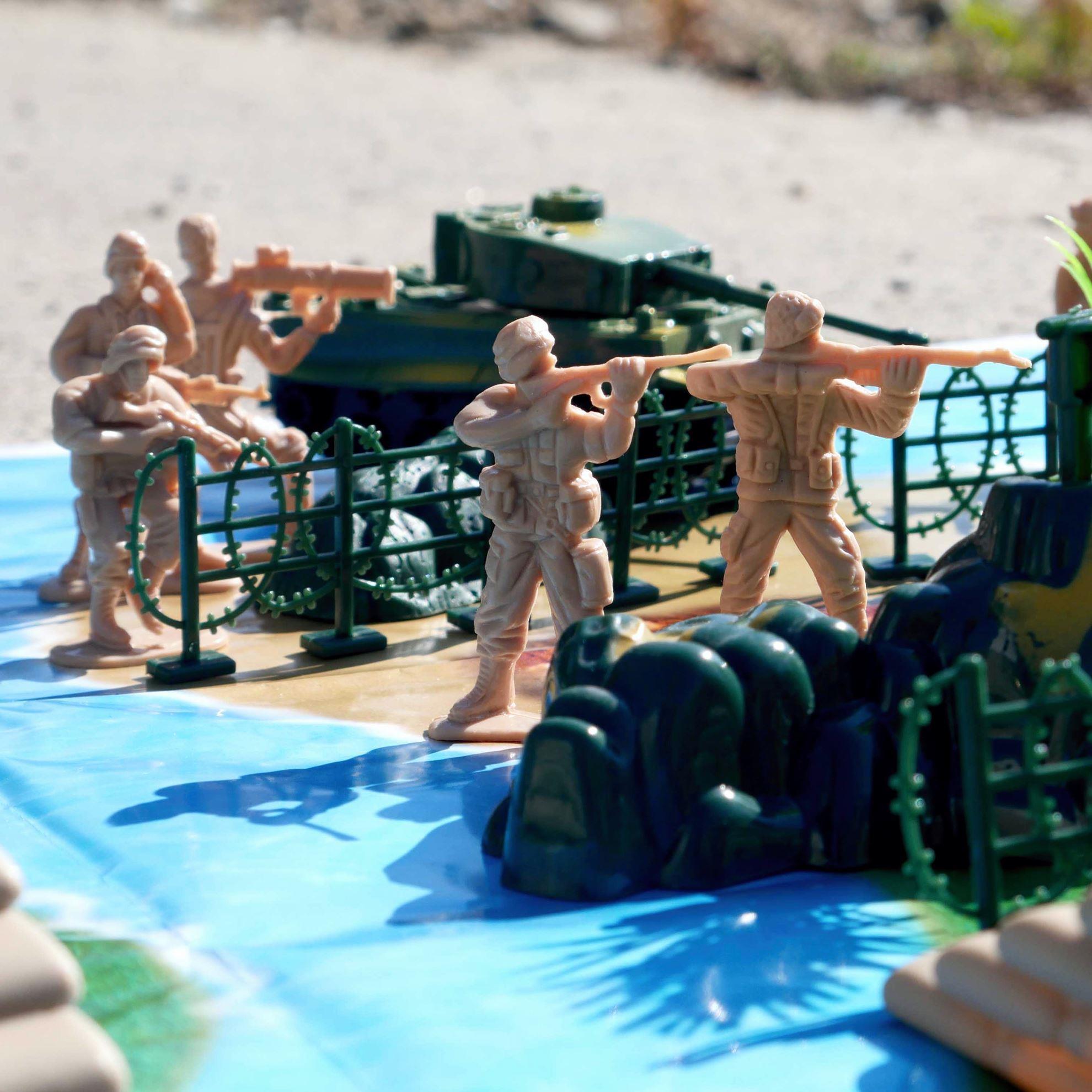 Setul militar cu accesorii va atrage toți copiii. În pachet se află multe figurine, accesorii și echipamente care merită cu adevărat să fie explorate. De asemenea, include o saltea de joacă pe care copiii pot aranja soldățeii cu tot echipamentul.