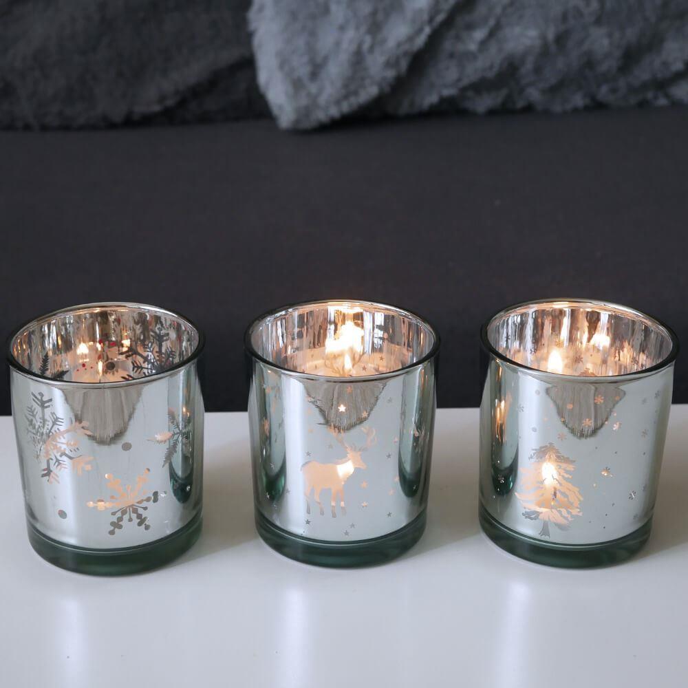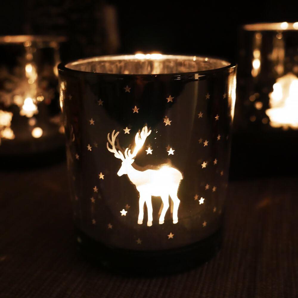 Sfeșnic de Crăciun din sticlă pentru lumânare tip pastilă - reni