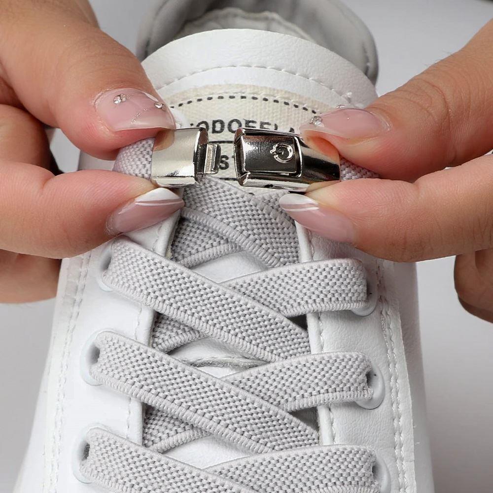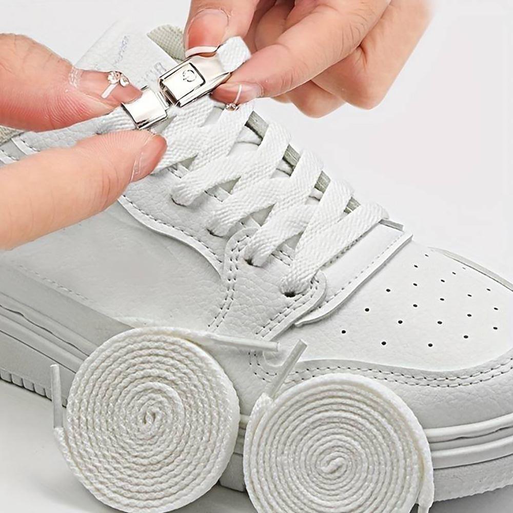 Aceste șireturi inovatoare combină eleganța și practicitatea pentru purtare zilnică. Mecanismele de închidere din metal nu doar că adaugă un aspect elegant, dar permit și încălțarea rapidă și ușoară. Datorită culorilor universale și lungimii de 95 cm, se potrivesc aproape cu orice stil de încălțăminte și, dacă este necesar, pot fi scurtate.
