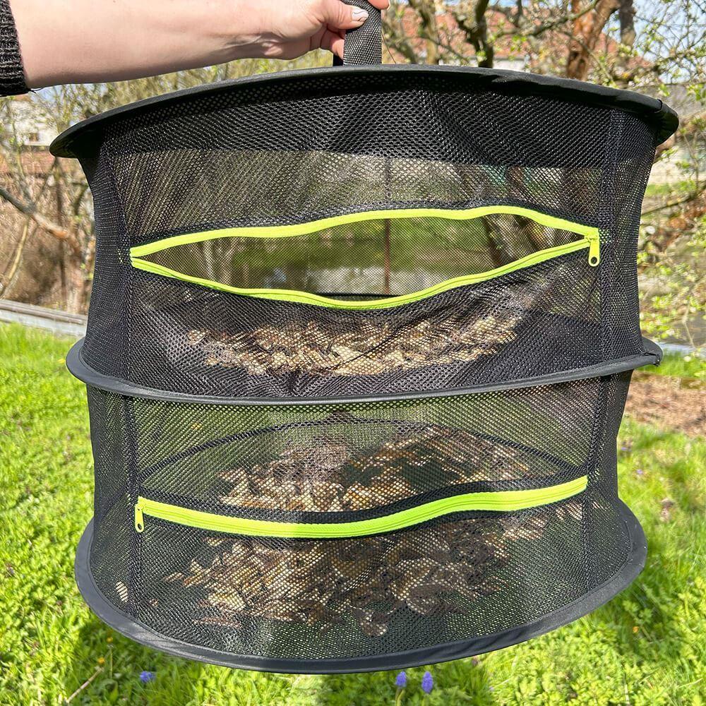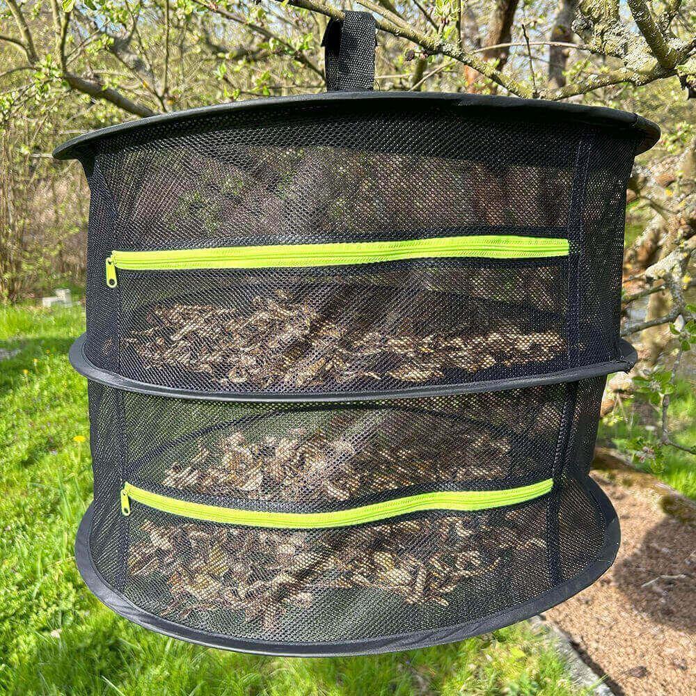 Două podele spațioase, pe care pur și simplu le închizi cu fermoar, garantează nu doar spațiu suficient pentru recolta ta, ci și siguranță împotriva vântului sau a insectelor curioase. Deveniți un profesionist în uscare și faceți aprovizionare - înainte ca iarna să vă întrebe ce ați făcut vara, veți avea o cămară plină!