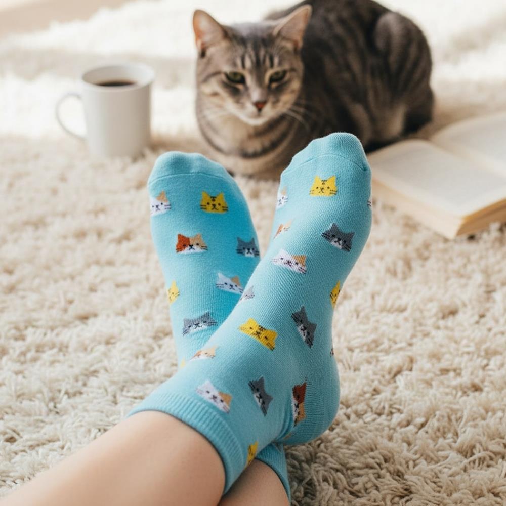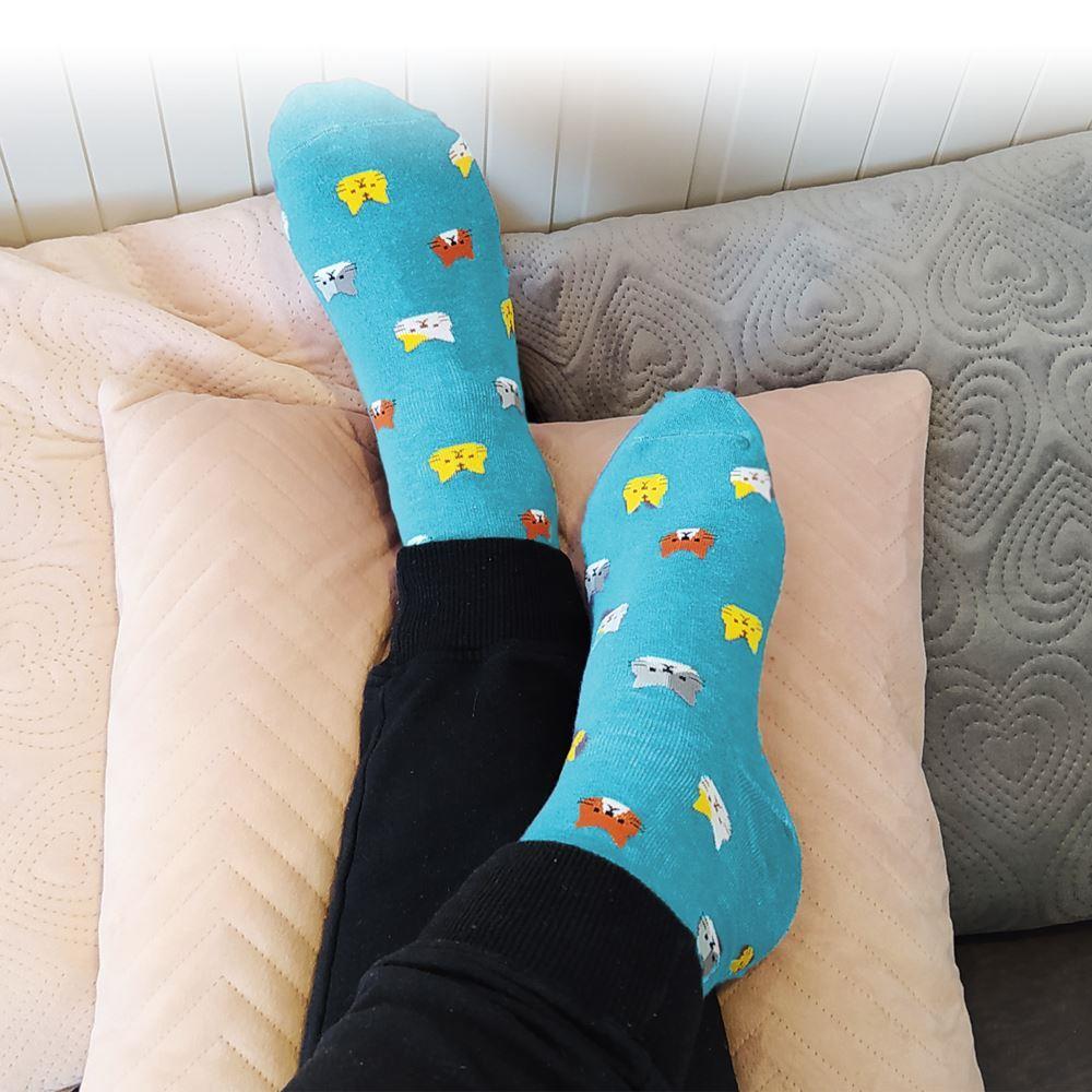 Șosete călduroase cu un strop de originalitate. Șosetele cu pisicuțe îi vor încânta pe toți iubitorii de pisici. Aspectul lor original va atrage cu siguranță atenția. Șosetele vesele te vor încălzi și vor aduce un plus de stil ținutei tale. Execuția de calitate și materialul plăcut asigură că vei purta aceste șosete cu mare plăcere.
