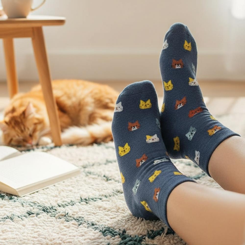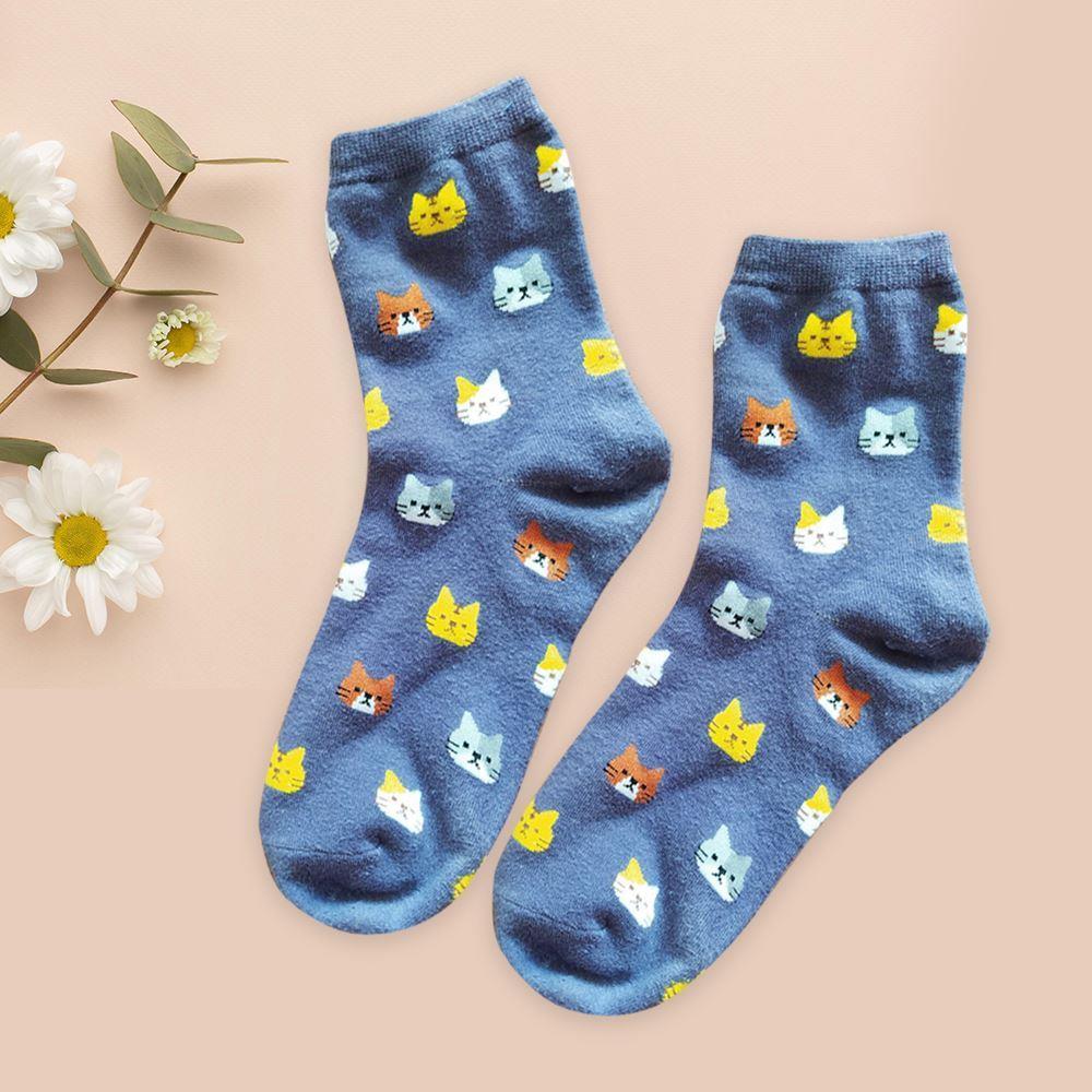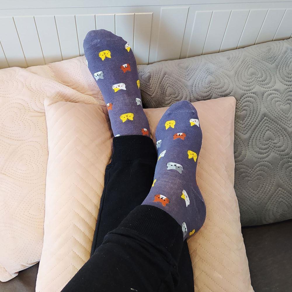 Șosete călduroase cu un strop de originalitate. Șosetele cu pisicuțe îi vor încânta pe toți iubitorii de pisici. Aspectul lor original va atrage cu siguranță atenția. Șosetele vesele te vor încălzi și vor aduce un plus de stil ținutei tale. Execuția de calitate și materialul plăcut asigură că vei purta aceste șosete cu mare plăcere.