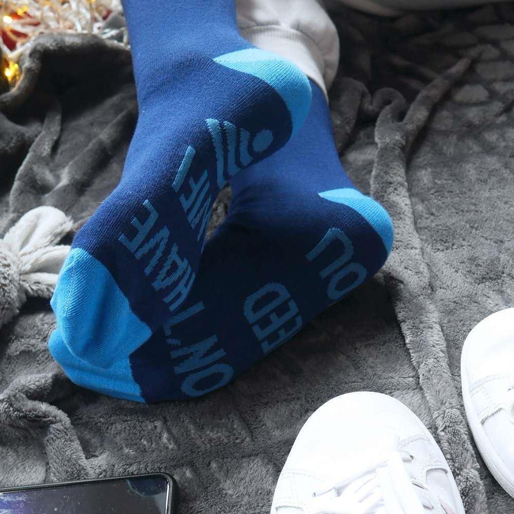 Acum nu mai trebuie să vă forțați corzile vocale, pentru că șosetele vor vorbi pentru voi. Se apropie cineva care vrea să vă deranjeze de la navigatul online? Nicio problemă! Doar ridicați picioarele și arătați aceste șosete stilate, cu care vă faceți clar și amuzant cunoscute prioritățile!
