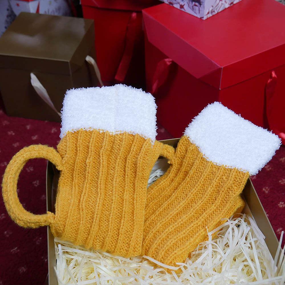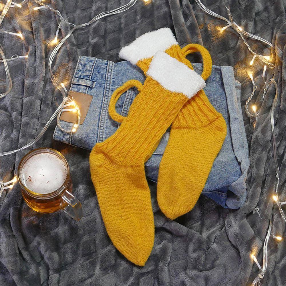 Șosetele tricotate în formă de bere cu siguranță vor fi apreciate nu doar de primitor, dar și de ceilalți, demonstrați-le că aveți simțul umorului.