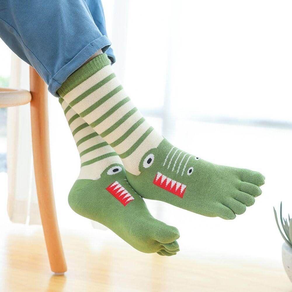 Șosete pentru copii cu degete - măr. 15-19 cm - crocodil