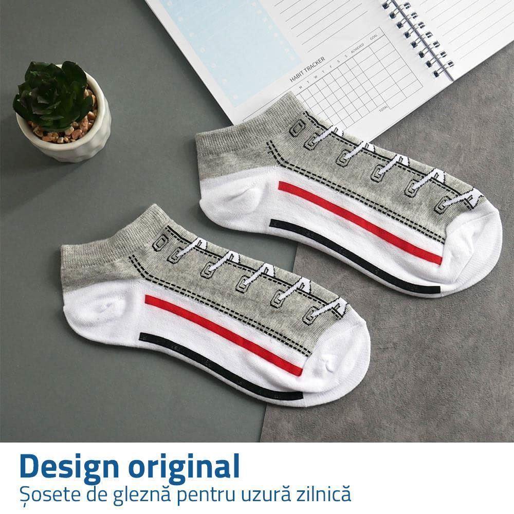 Îți place simțul umorului și acesta se reflectă în ținuta ta de zi cu zi? Atunci aceste șosete tip sneaker nu trebuie să lipsească din garderoba ta. Șosetele cu design de pantofi arată pur și simplu grozav.