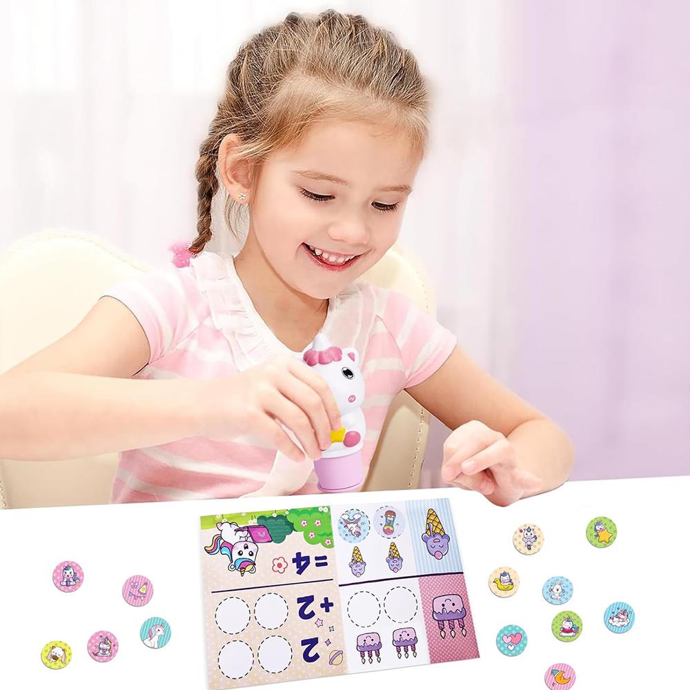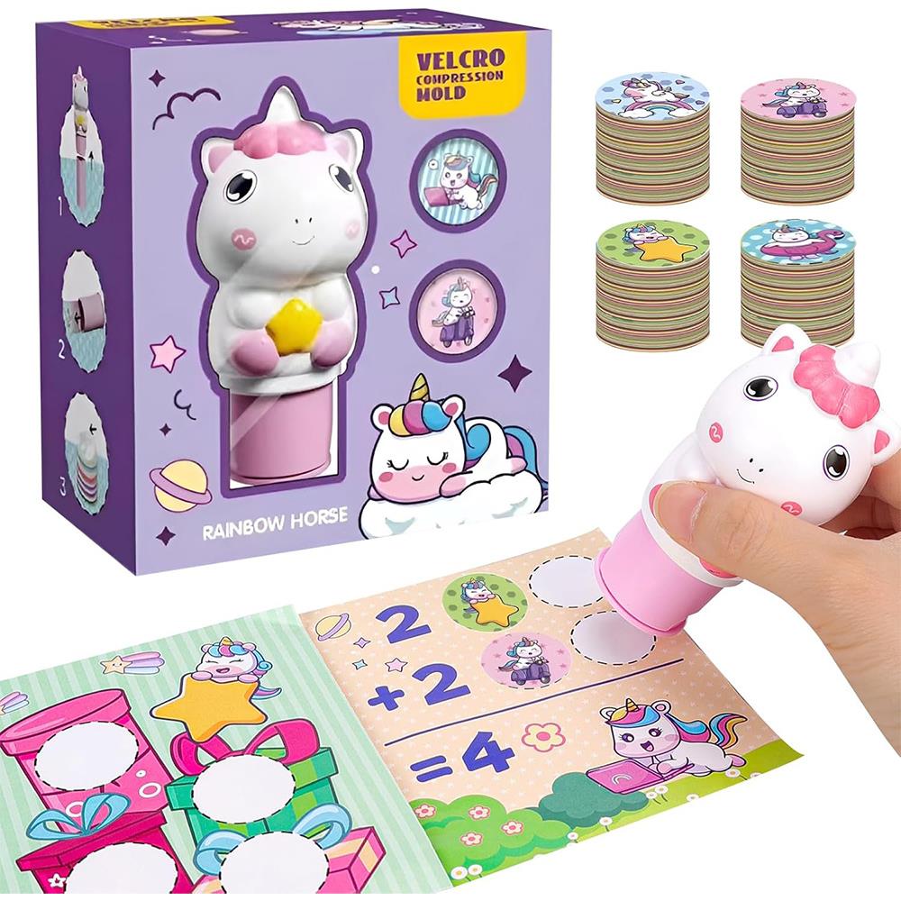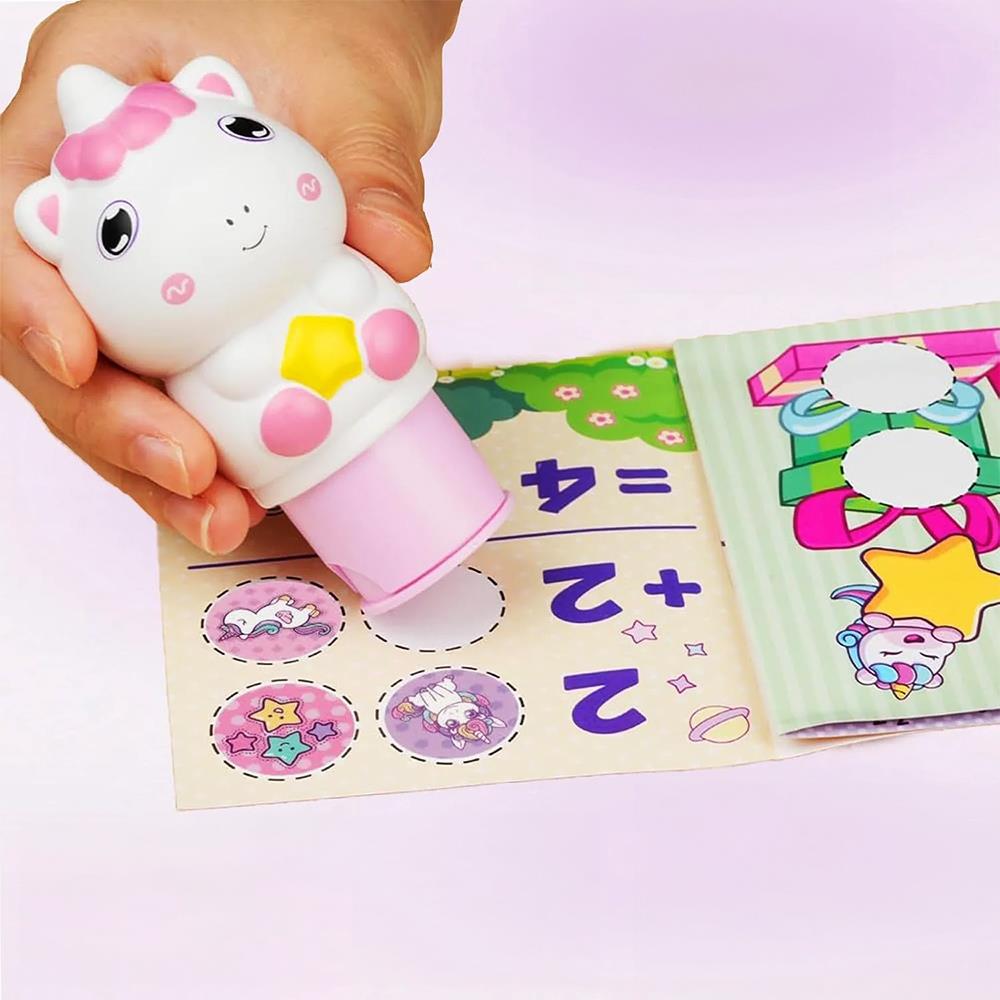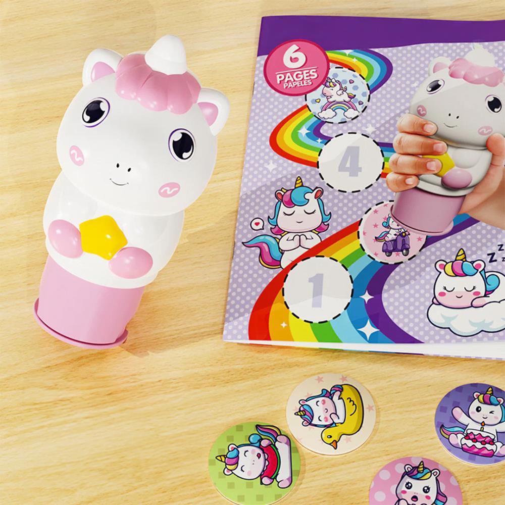 Această ștampilă cu autocolante este visul împlinit al oricărui mic creativ! O ștampilă drăgălașă ascunde magie – fiecare ștampilă lasă o urmă colorată, autocolantă, cu o imagine. Copiii o pot folosi cu ușurință pentru a decora caiete, jurnale, felicitări sau pur și simplu pentru a se juca și a crea propria colecție de autocolante. Ștampila magică poate fi folosită și ca recompensă pentru micii școlari.