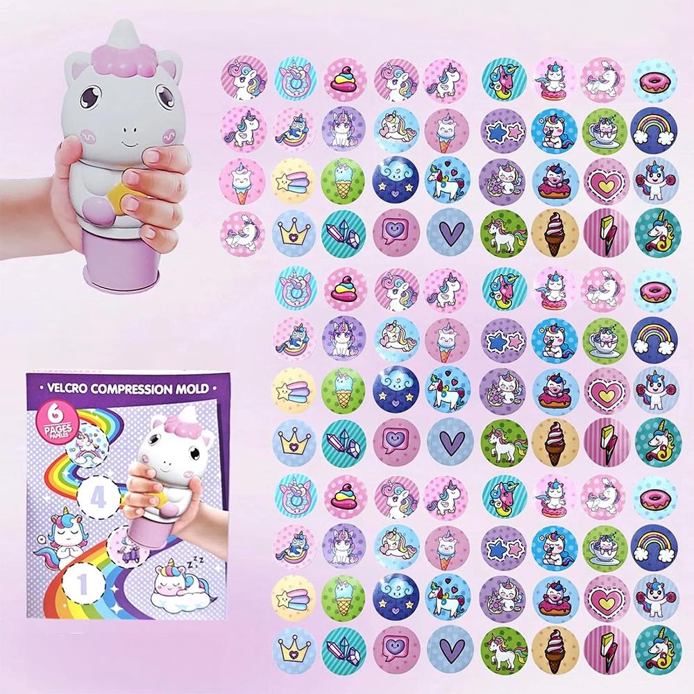 Ștampila nu necesită nici un alt lipici sau cerneală – trebuie doar să o aplicați. În pachet veți găsi 100 de bucăți de autocolante, o carte de 6 pagini pentru imprimarea autocolantelor și ștampila în sine. Cu acest cadou pentru copii, cu siguranță nu veți da greș!
