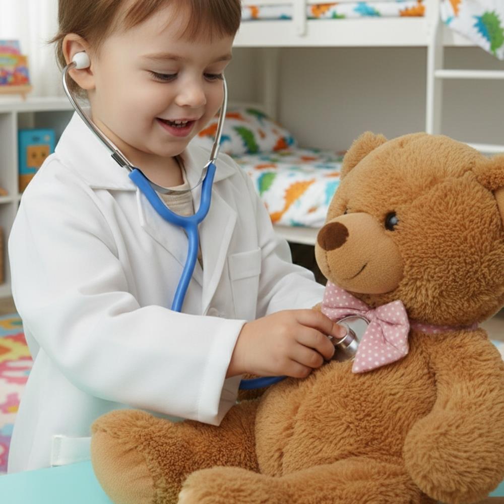 Înălțați jocul cu copiii la un alt nivel și dezvoltați interesul pentru sănătate. Implicați imaginația și în joc, atunci când chiar și ursulețul de pluș preferat al copilului dumneavoastră se poate îmbolnăvi, fiți eroul care îl vindecă! Cu ajutorul stetoscopului, atât dumneavoastră, cât și copilul dumneavoastră puteți deveni un adevărat doctor care salvează vieți. Astfel, puteți introduce treptat copiii în lumea medicinei sau le puteți simplifica pregătirea pentru prima vizită la medic. Îl puteți folosi atât în mediul de acasă pentru „examinarea” fraților sau jucăriilor de pluș, dar este de asemenea potrivit ca echipament pentru grădinițe sau centre de zi.