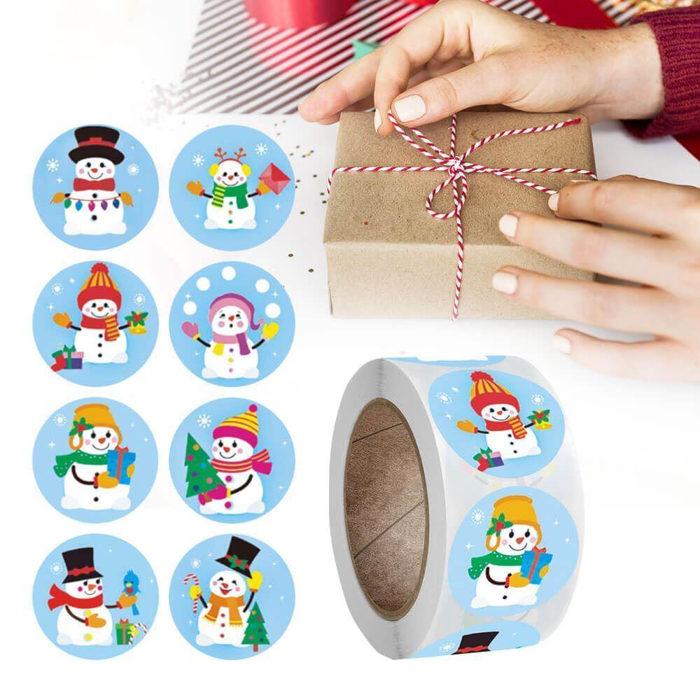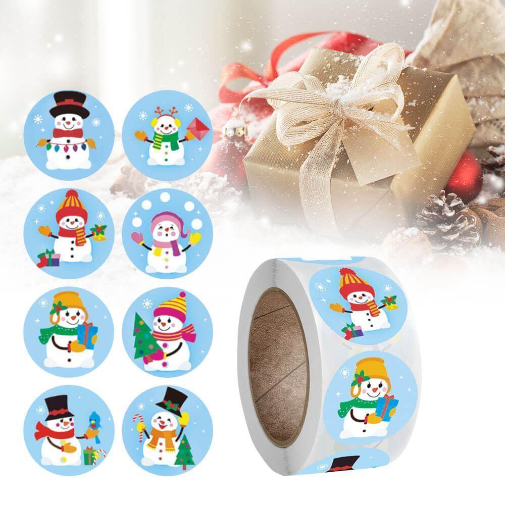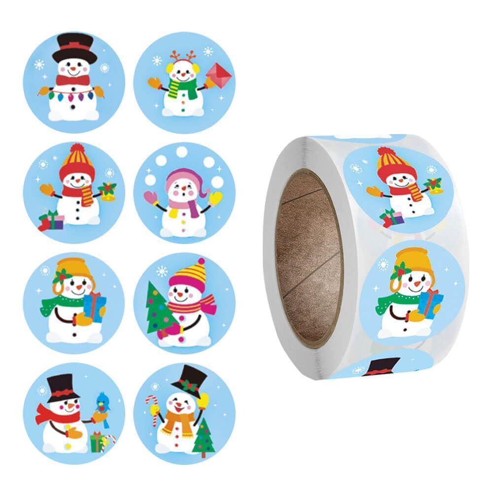 Stickere autocolante de Crăciun 500 buc - oameni de zăpadă veseli