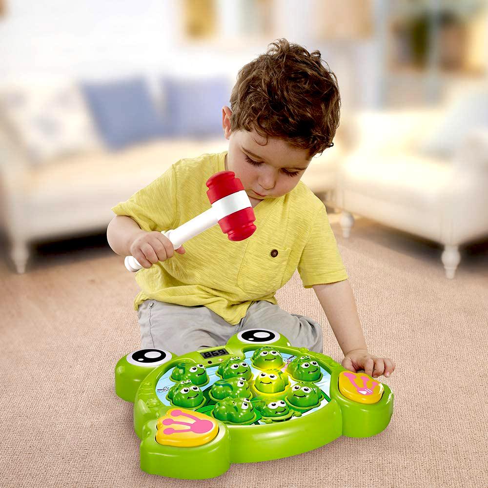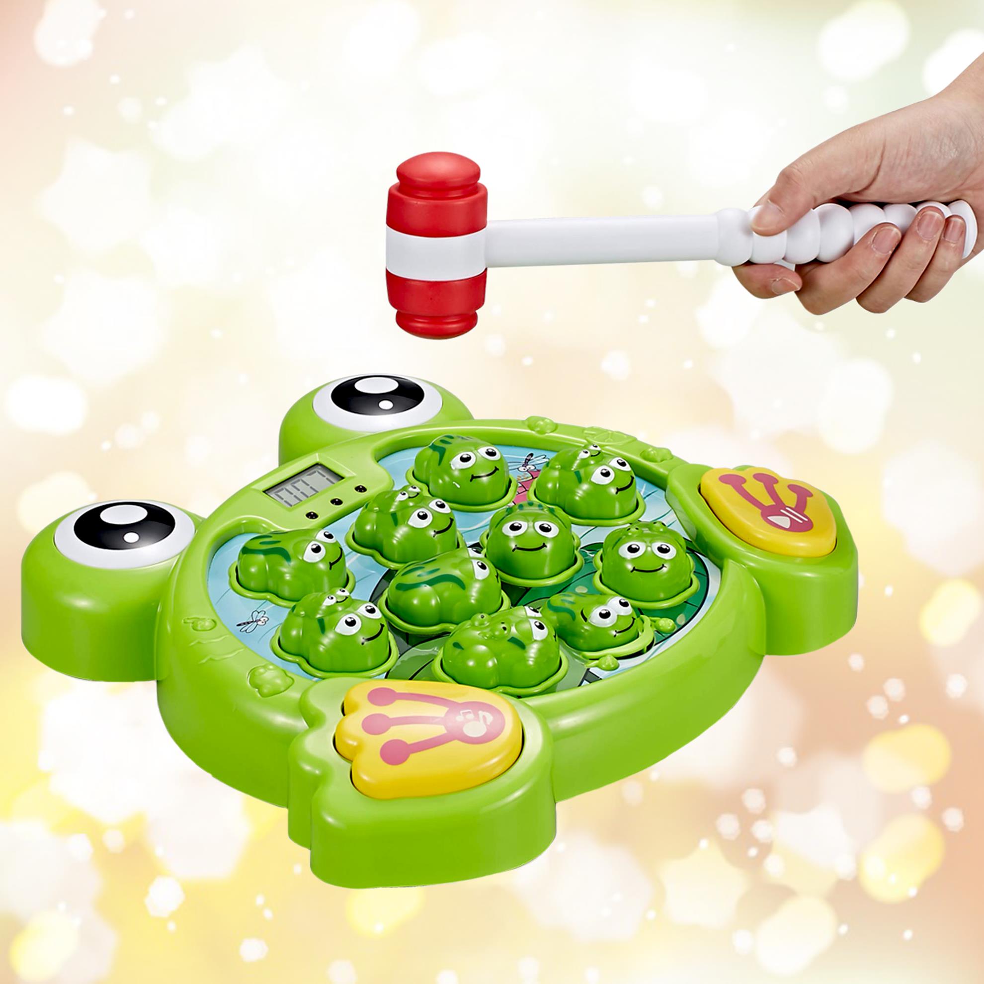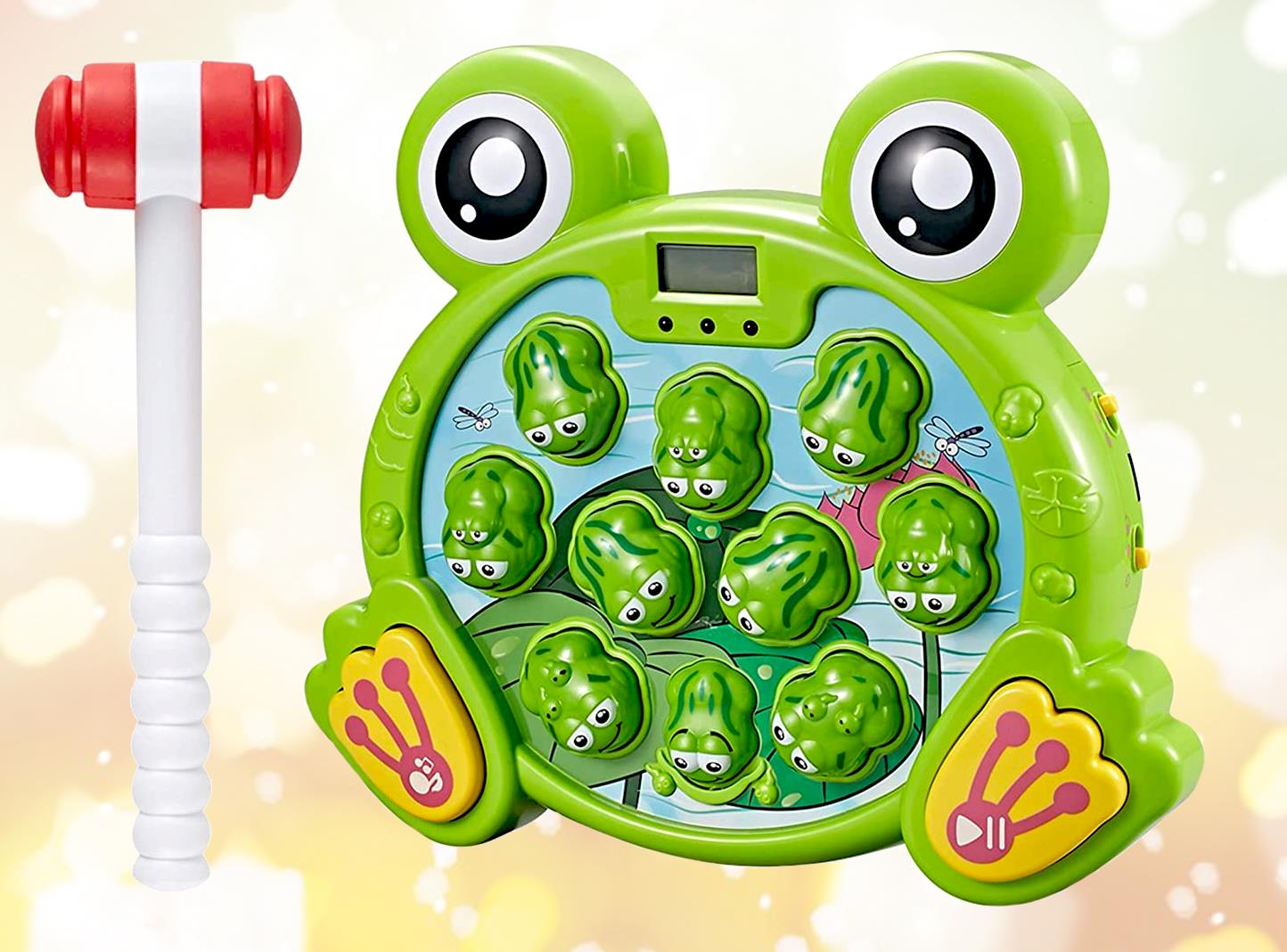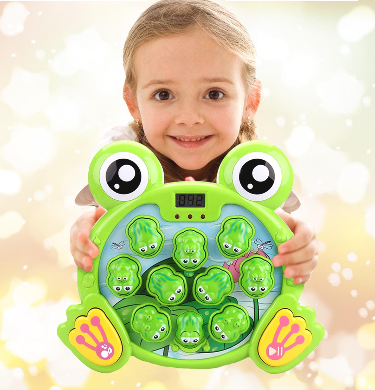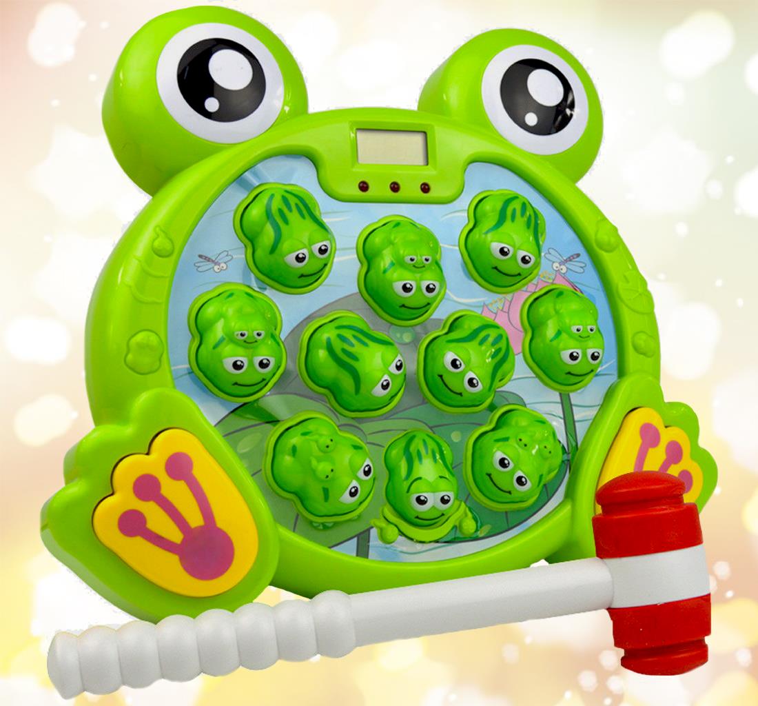 Căutați un cadou care nu doar distrează, dar și învață? Copiii își vor îmbunătăți abilitățile motorii fine, capacitatea de concentrare și recunoaștere datorită acestui joc interactiv. Jocul va distra pe toată lumea, indiferent de vârstă. Urmăriți care dintre broscuțe se va aprinde următoarea și loviți-o, scorul dumneavoastră va fi afișat pe ecranul LCD.