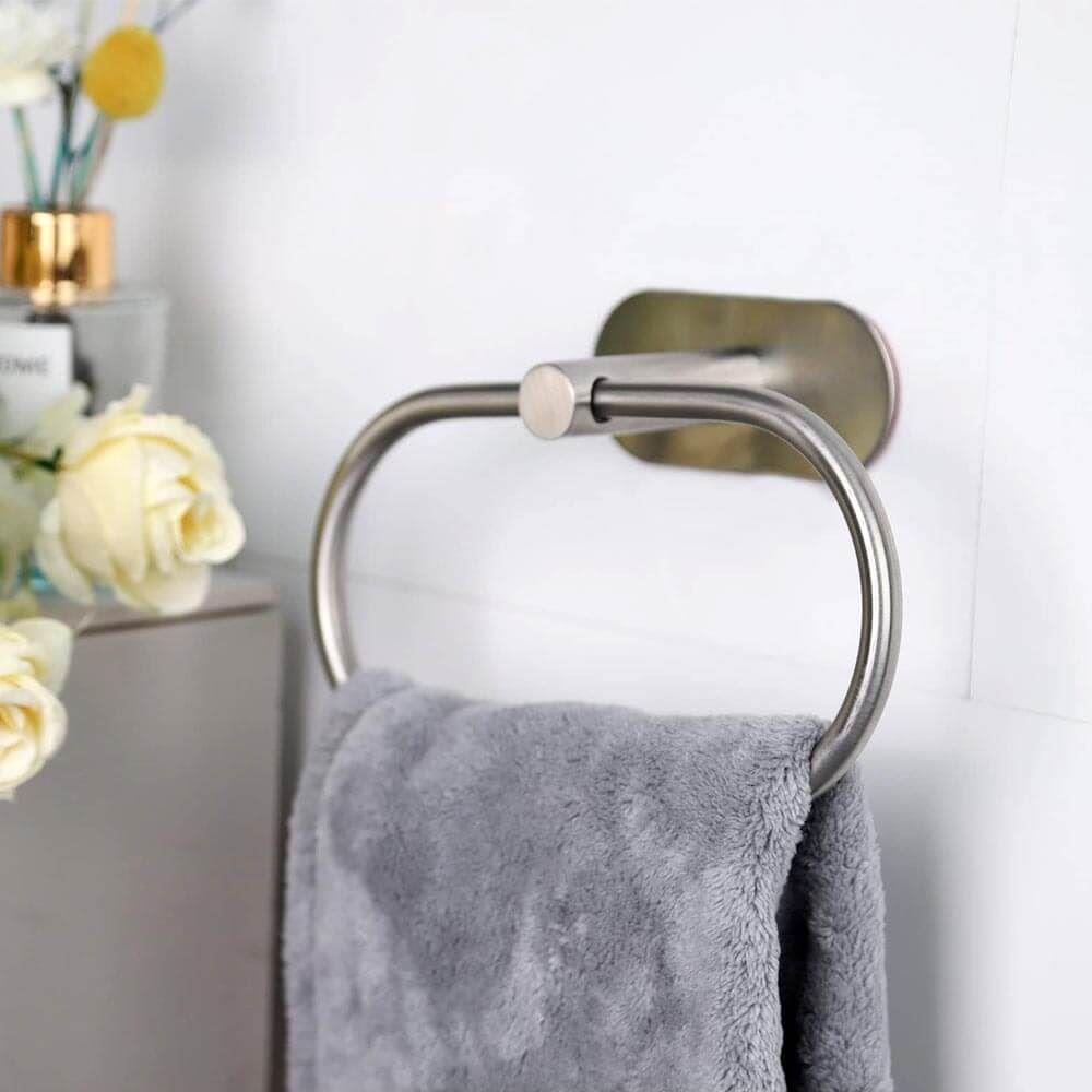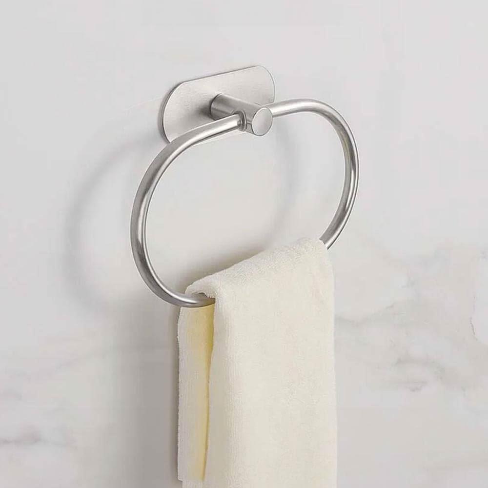 Suport adeziv pentru prosoape, formă de inel - argintiu