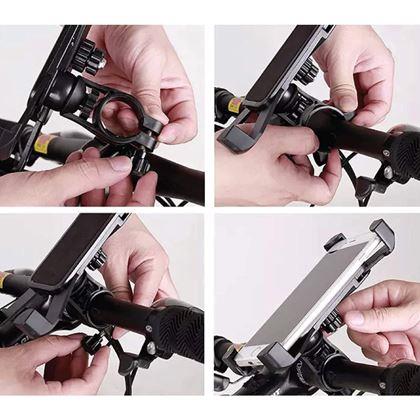 Mai întâi, fixați suportul de telefon pe bara ghidonului. Cu ajutorul rotițelor șurub, strângeți bine suportul. Există opțiunea de a seta rotația suportului, se poate roti complet la 360°. Un avantaj al suportului este că puteți seta dimensiunea dorită în funcție de telefonul dumneavoastră, în intervalul de dimensiuni ale telefonului de la 3,5 până la 6 inci. Dimensiunile suportului la cea mai mare extindere pe lungime sunt de 18,5 cm și pe lățime de 9,5 cm. Dimensiunile suportului la cea mai mică extindere pe lungime sunt de 12 cm și pe lățime de 6 cm.