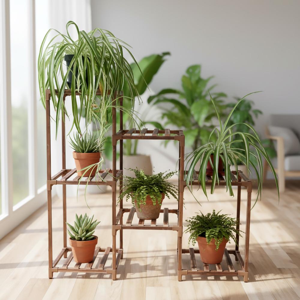 Rafturile aglomerate, pervazurile care transformă deschiderea unei ferestre într-o operațiune anevoioasă – așa arată adesea locuințele celor care iubesc plantele de apartament. Dar cine ar putea să lase în magazin acel soi special, pe care și-l dorește de ceva timp și care lipsește din colecția sa? Înlăturați lipsa de spațiu și creați-vă acasă o oază verde de relaxare, cu acest suport de lemn pentru plante, este atât de ușor!