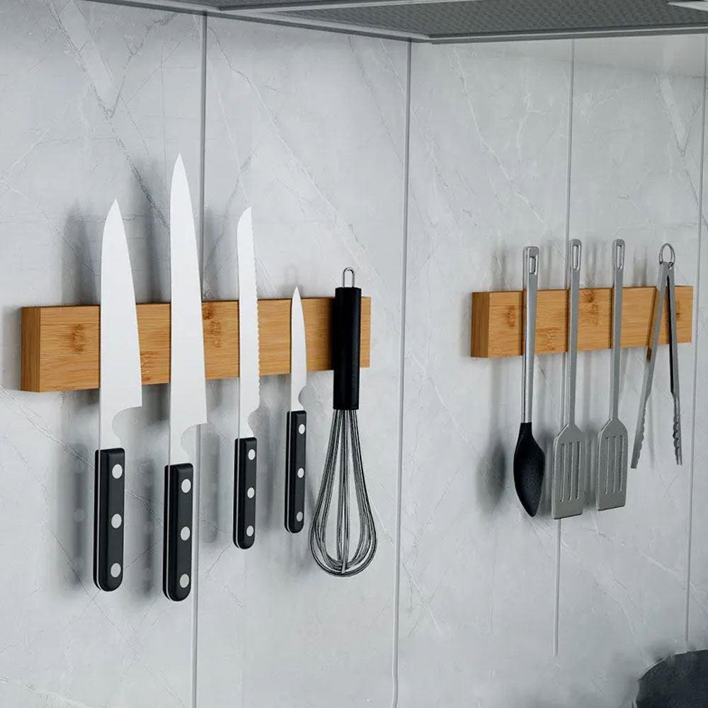 Un ajutor indispensabil în bucătărie pentru orice pasionat de gătit! Uitați de depozitarea cuțitelor în sertare sau tăvițe. Nu doar că există riscul de accidentări neplăcute, dar și deteriorarea lamei! Suportul magnetic pentru cuțite se fixează cu ușurință folosind șuruburile incluse în pachet. Locul ideal pentru montarea suportului este direct deasupra blatului de lucru. Astfel, veți avea întotdeauna toate ustensilele la îndemână.