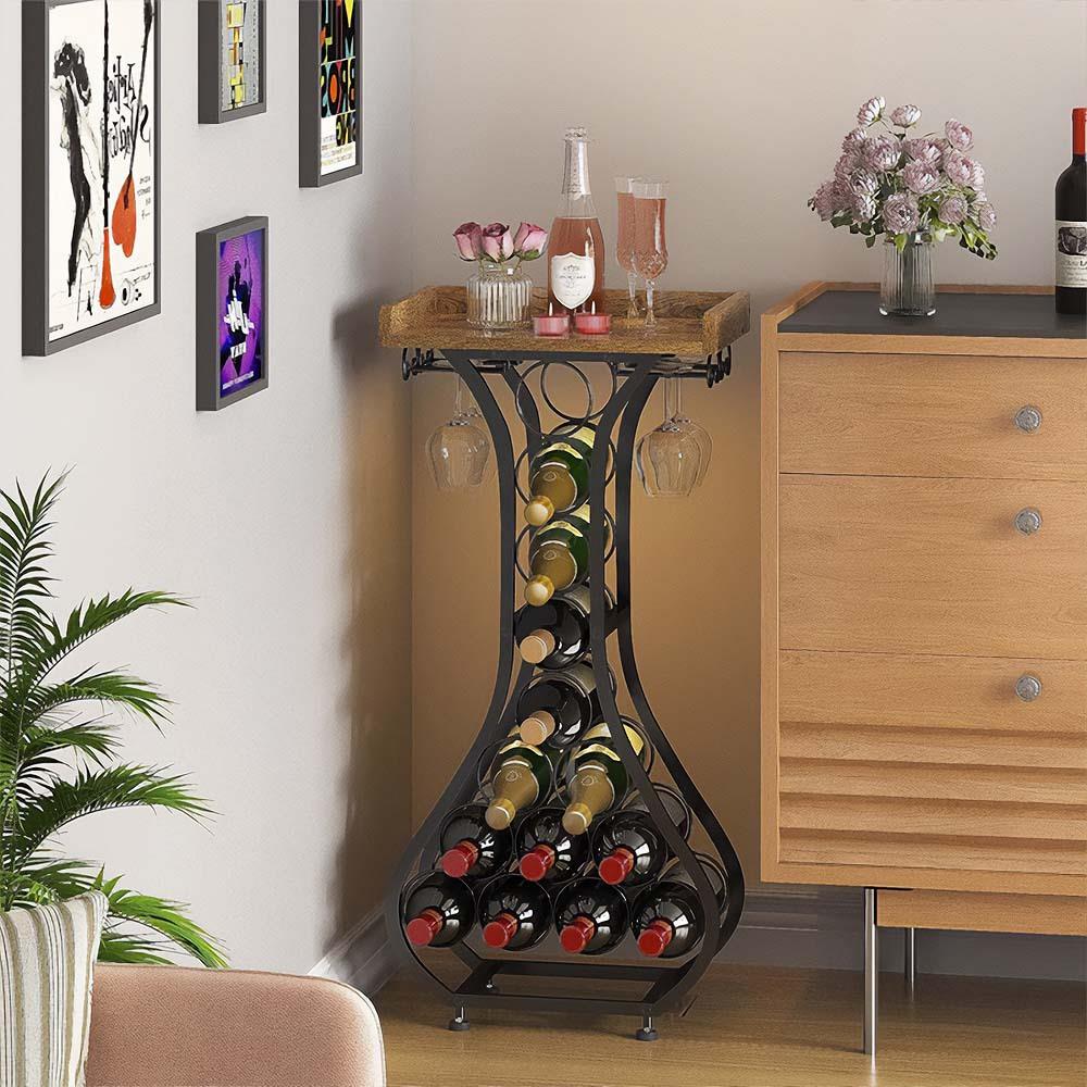 Partea superioară este formată dintr-un blat de lemn care este perfect pentru servirea paharelor, depozitarea sticlelor sau plasarea decorațiunilor. Sub blat se află suporturi suspendate pentru până la 4 pahare de vin, datorită cărora veți avea senzația unei adevărate crame chiar la dumneavoastră acasă. Structura suportului poate găzdui până la 14 sticle și le păstrează în poziția corectă.