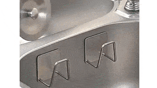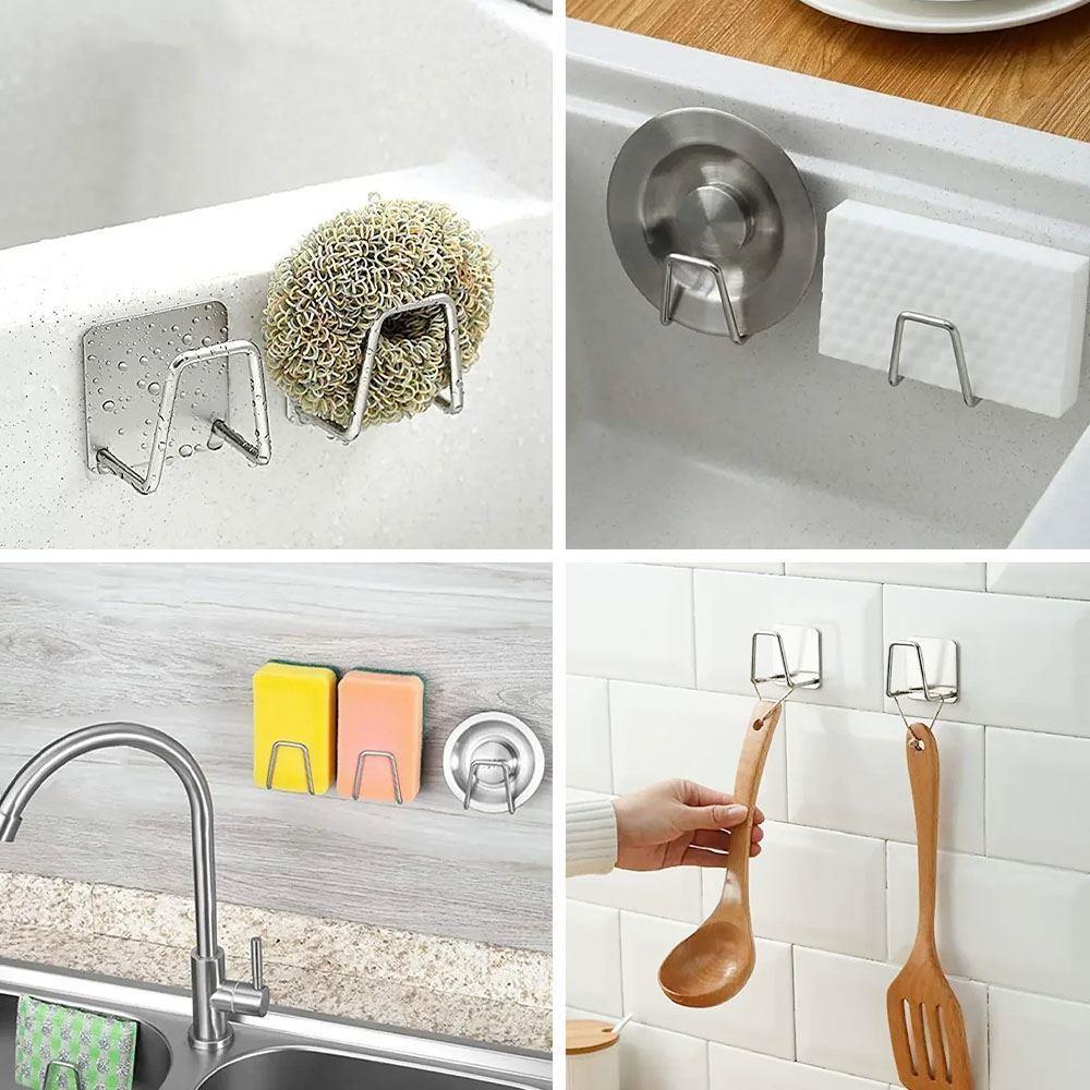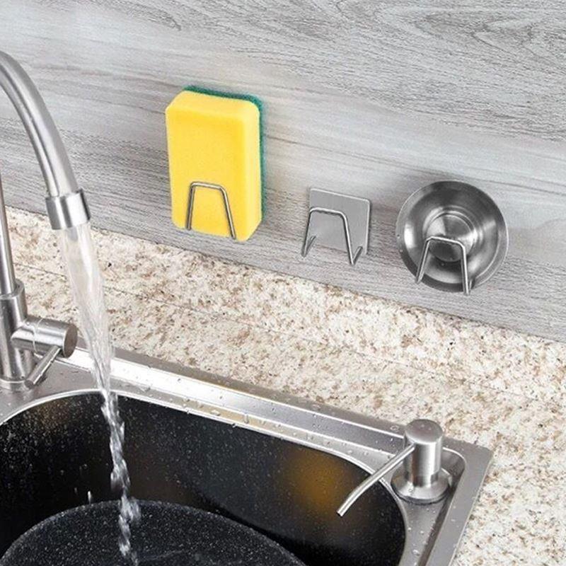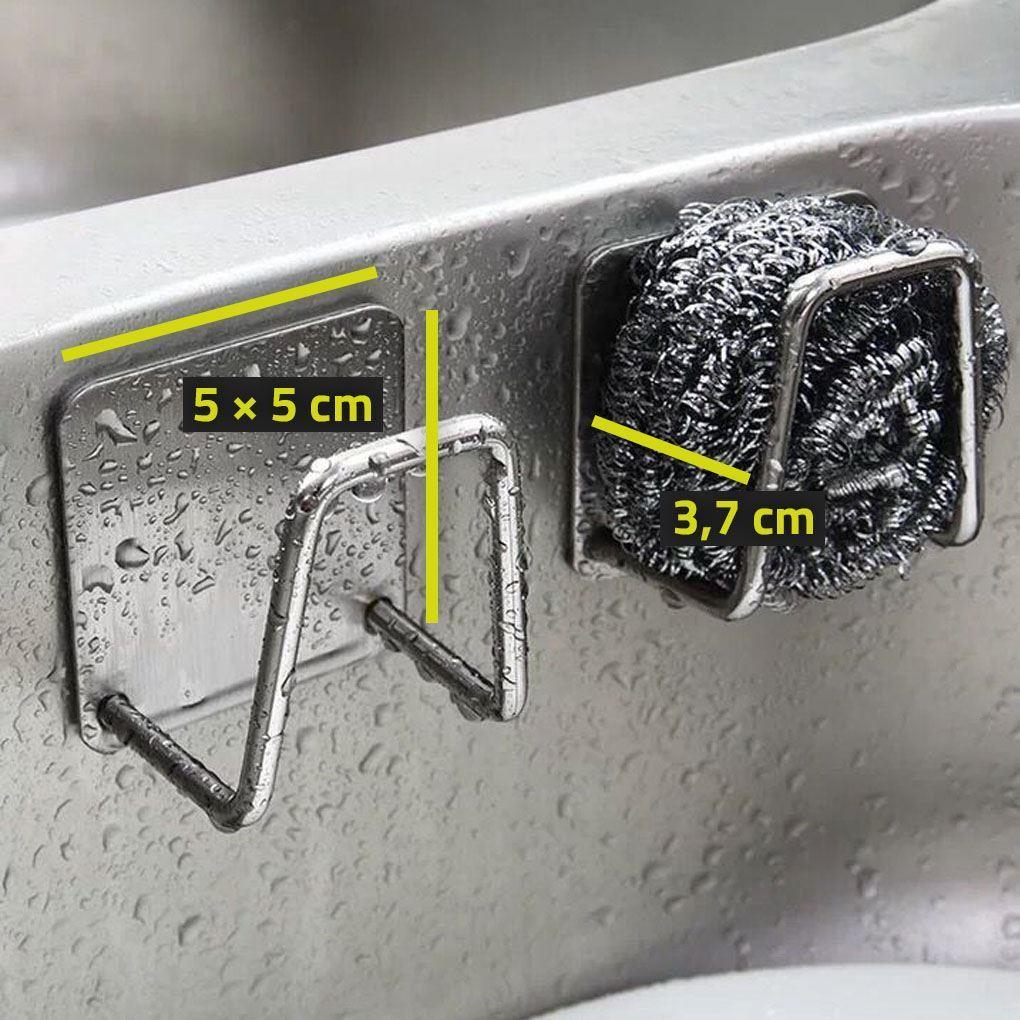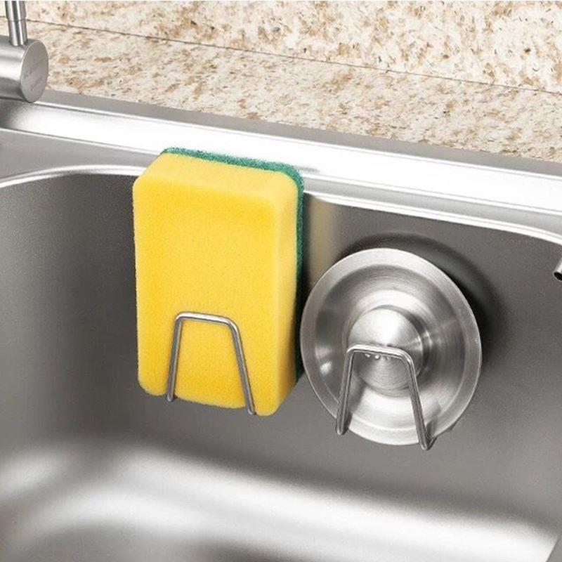 Suportul pentru burete este realizat din inox. După lipire, este aproape invizibil și se potrivește frumos cu designul și culoarea chiuvetei.