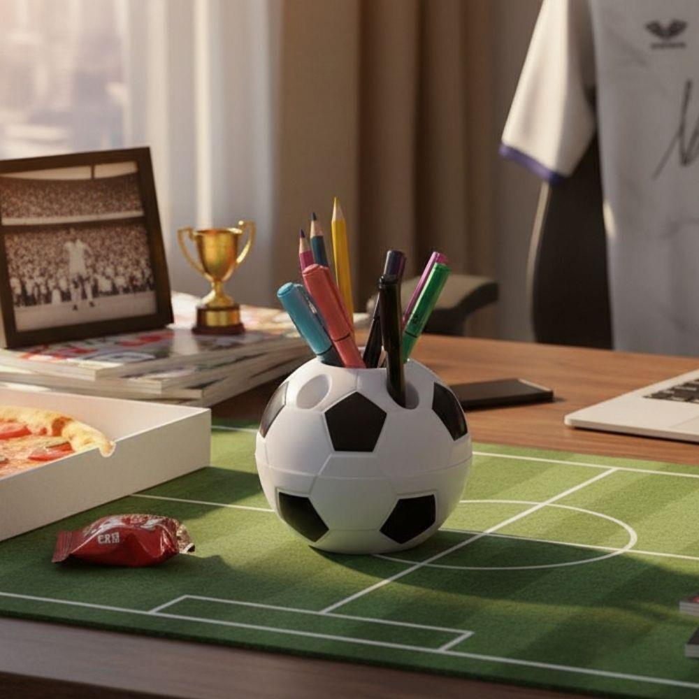 Organizator elegant în formă de minge de fotbal, care va aduce ordine pe orice birou.