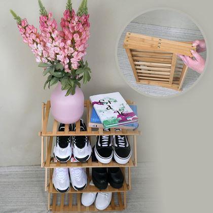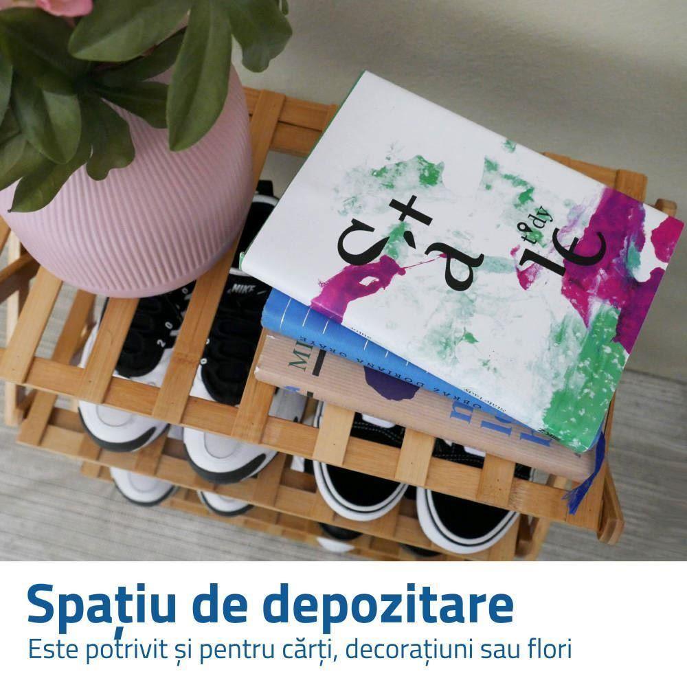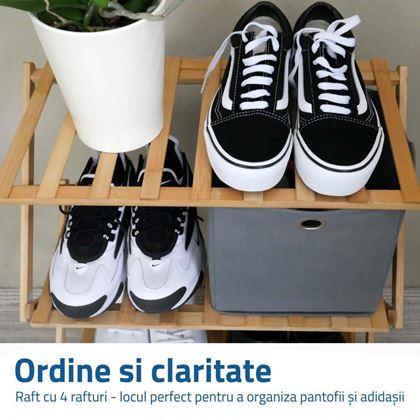Puteți să faceți ordine acasă cu ușurință folosind un suport de încălțăminte din lemn. Un raft practic și de design cu 4 polițe este potrivit nu doar pentru organizarea pantofilor și adidașilor. Puteți să îl așezați în baie pentru a organiza prosoapele, halatele sau produsele cosmetice. Va fi util și în birou ca raft pentru cărți, decorațiuni sau flori.