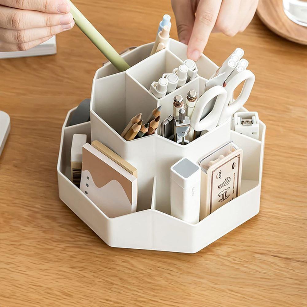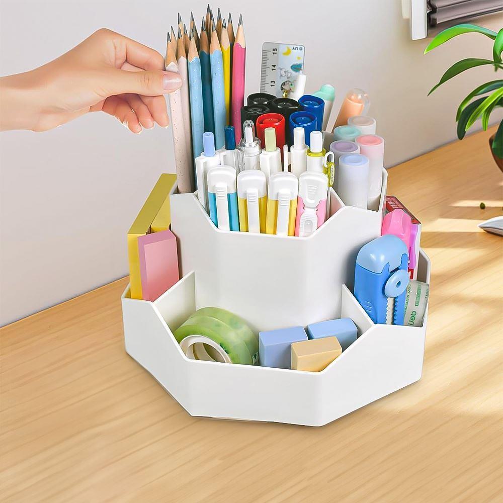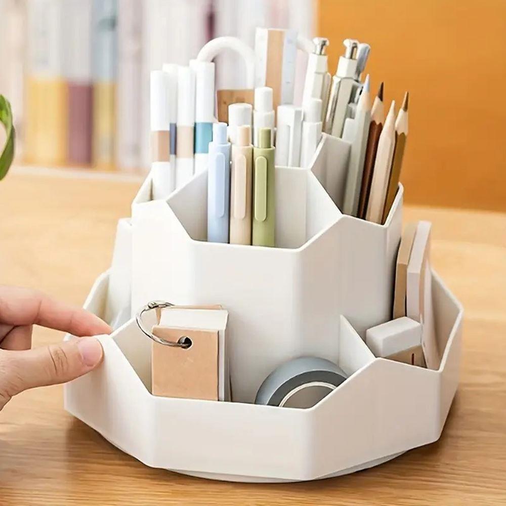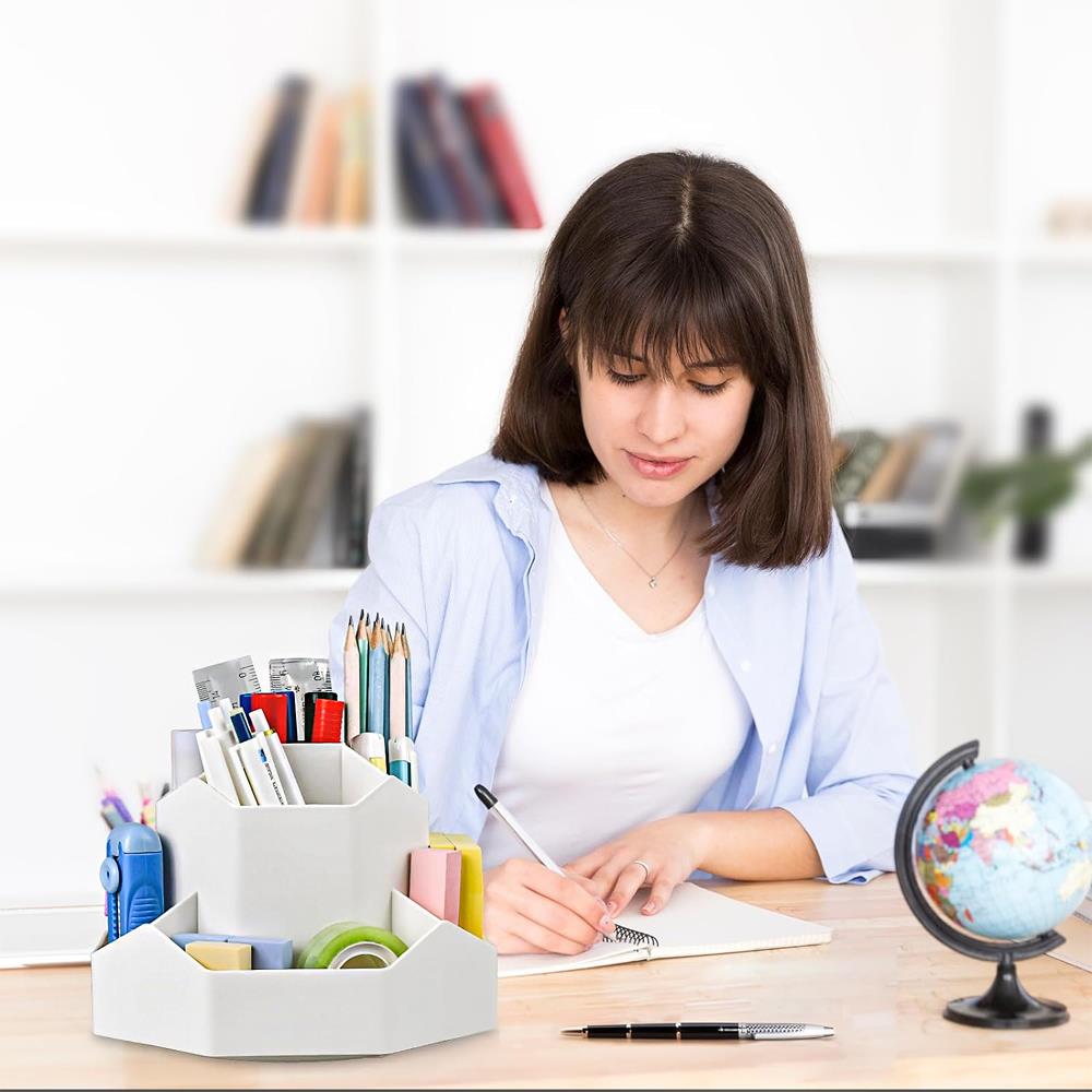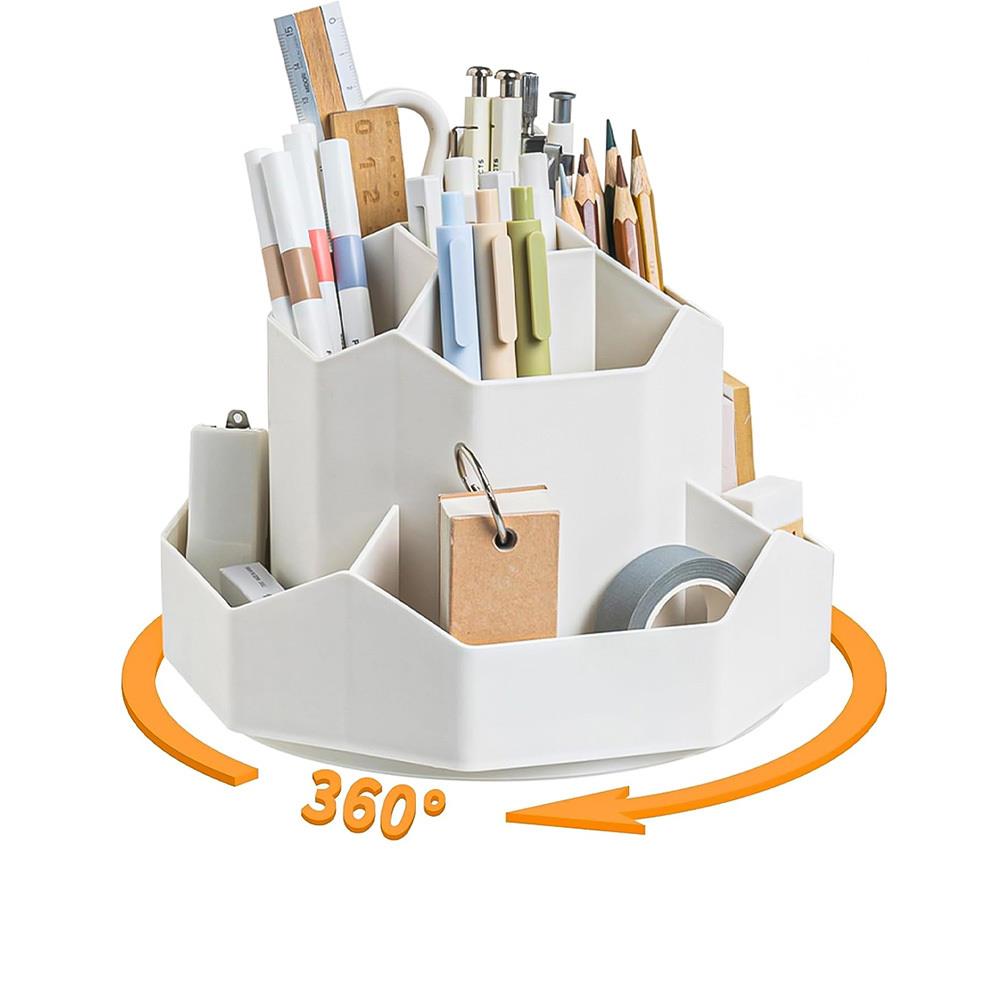 Păstrați biroul curat și organizat cu un suport rotativ pentru pixuri. Acest suport practic permite organizarea ușoară a tuturor instrumentelor de scris și vă asigură că le aveți mereu la îndemână. Mecanismul rotativ facilitează accesul la toate obiectele, economisind timp și îmbunătățind eficiența la locul de muncă.