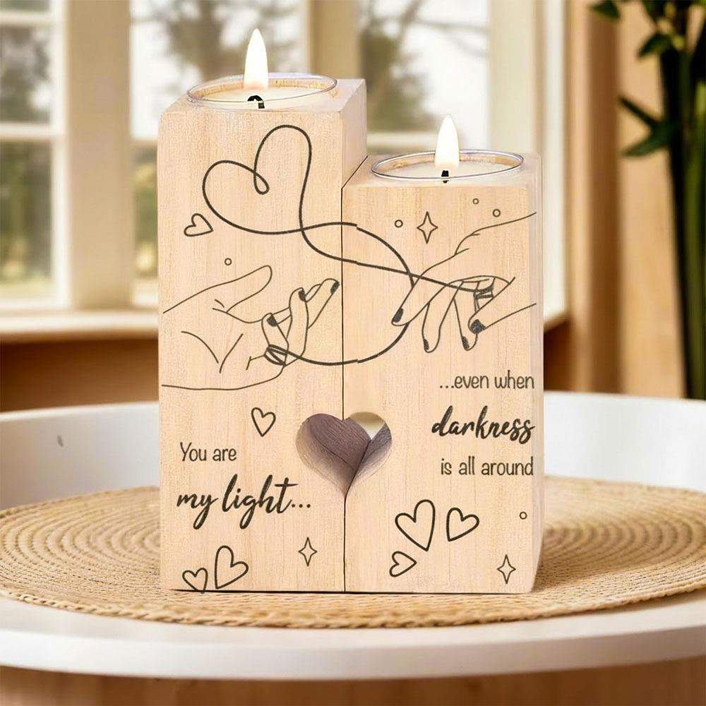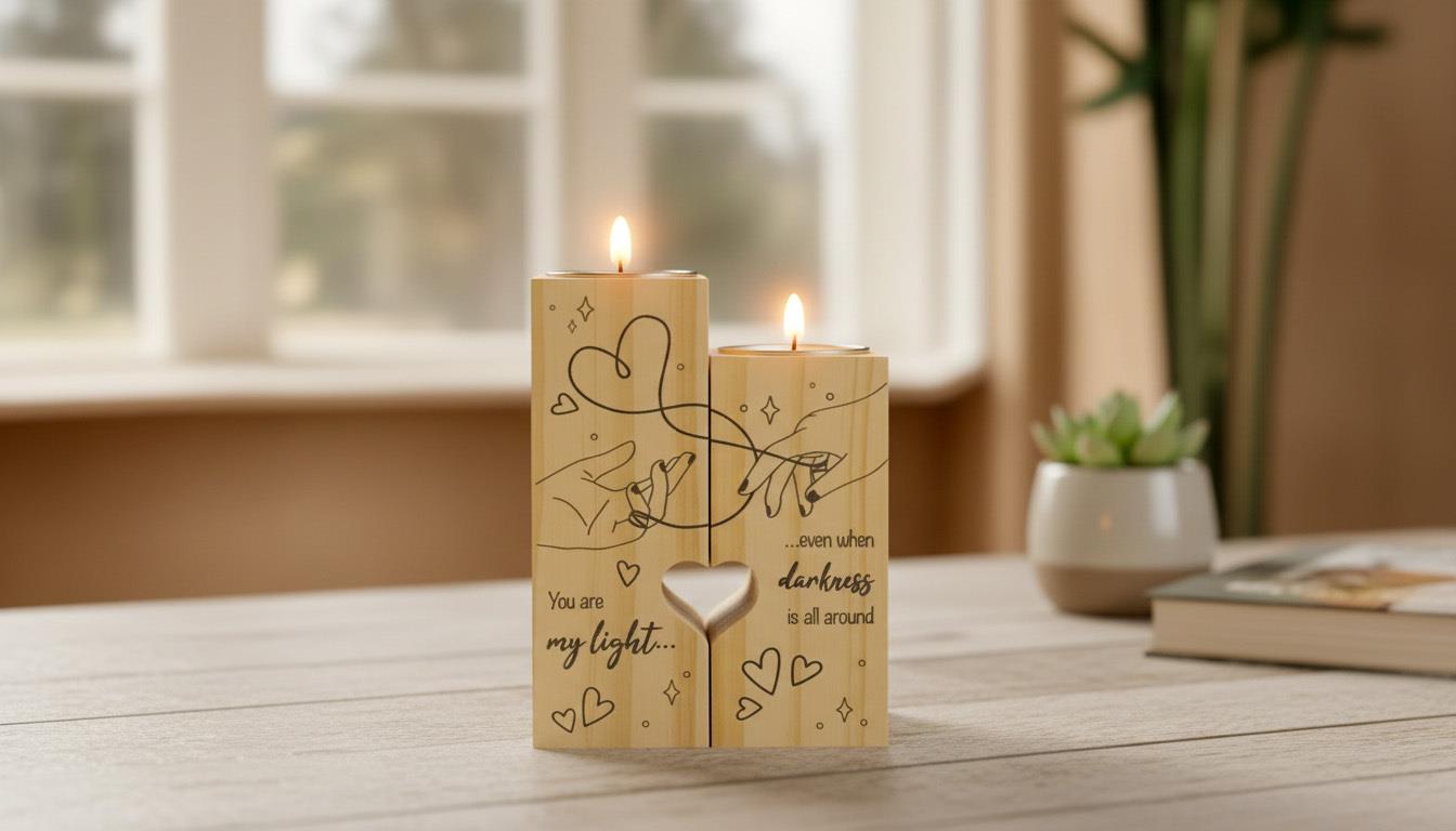 Suporturi din lemn pentru lumânări tip pastilă pentru cupluri, 2 bucăți - inimă