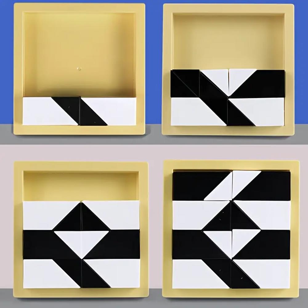 Tangramul alb-negru este un joc excelent pentru toți cei care adoră să gândească și să se joace cu modele. Setul conține forme din lemn și cartonașe cu modele de diferite niveluri – de la forme geometrice simple până la unele complexe. Scopul este să îmbini piesele astfel încât să corespundă imaginii date.