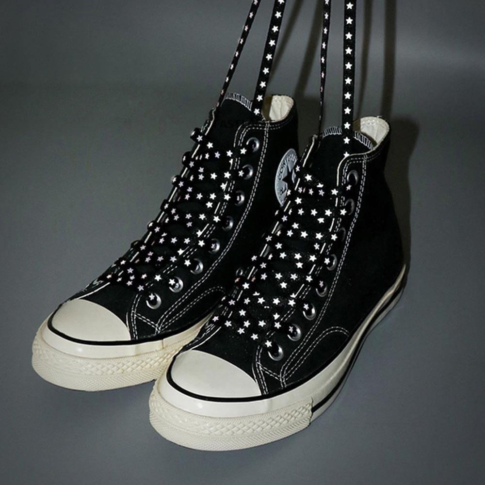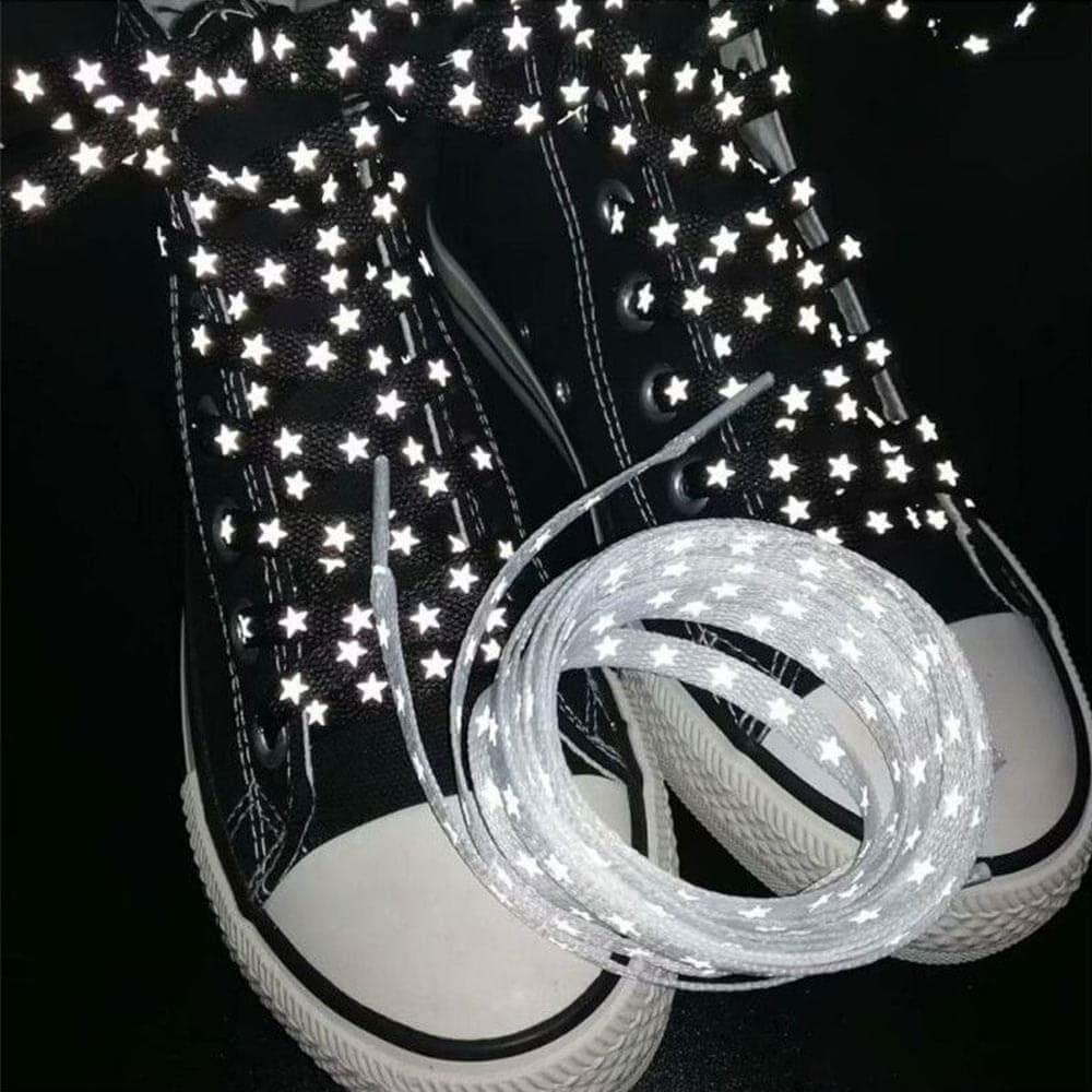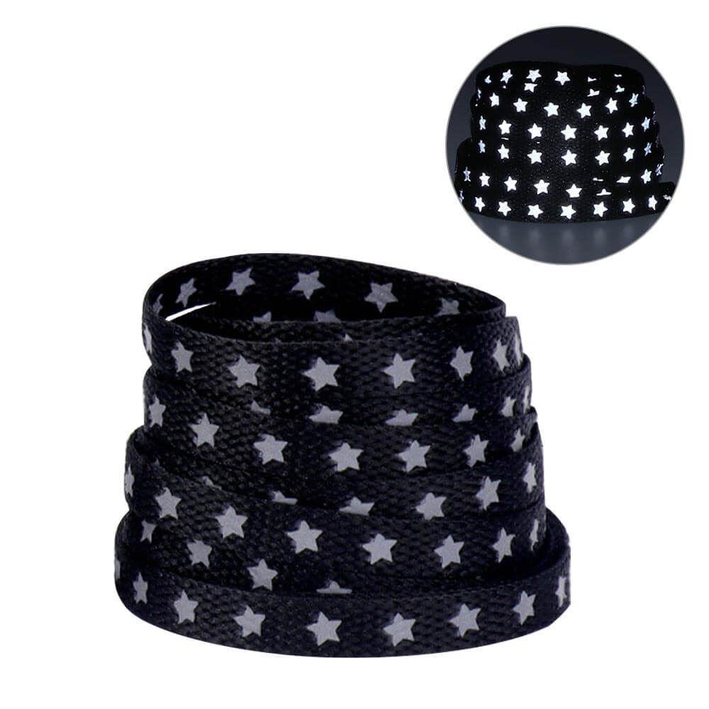 V-ați săturat de șireturi obișnuite? Ieșiți din mulțime cu un accesoriu de modă original care vă va evidenția stilul! Șireturile se pot introduce ușor atât în pantofi sport, cât și în bocanci cu șiret. Steluțele argintii de pe șireturi sunt reflectorizante, astfel că reflectă lumina incidentă. Șireturile sunt potrivite nu doar pentru copii la școală, ci pentru oricine dorește să iasă în evidență cu ceva unic!