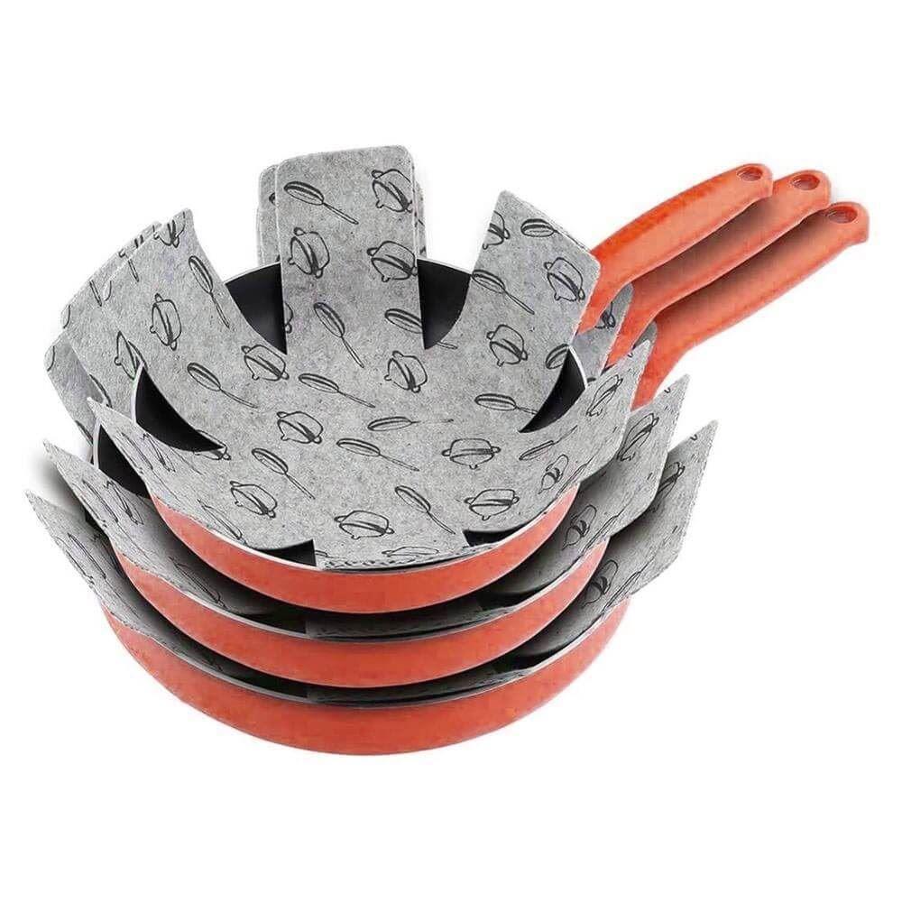Vă temeți că vă zgâriați vesela atunci când o așezați una peste alta în timpul scoaterii sau așezării în dulap? Atât cratițele, cât și tigaile se deteriorează atunci când sunt așezate direct pe celelalte, fără niciun tocător, deoarece se zgârie ușor și astfel vă scurtați durata de viață. Și asta ar fi cu adevărat păcat.