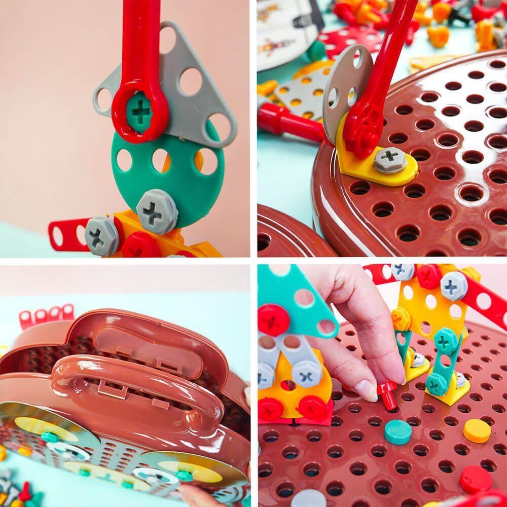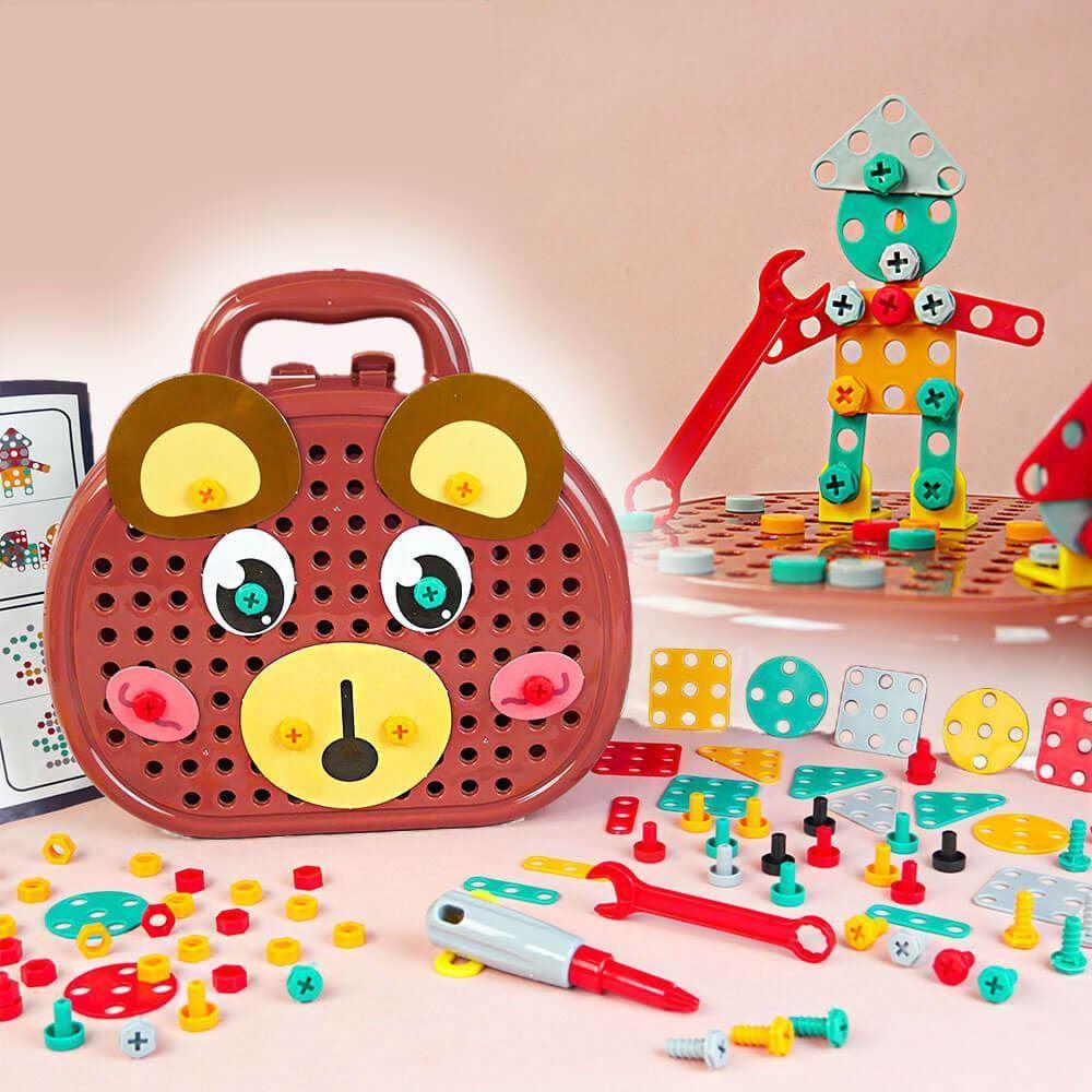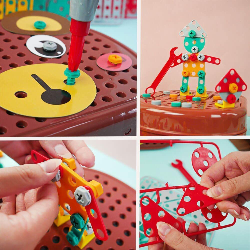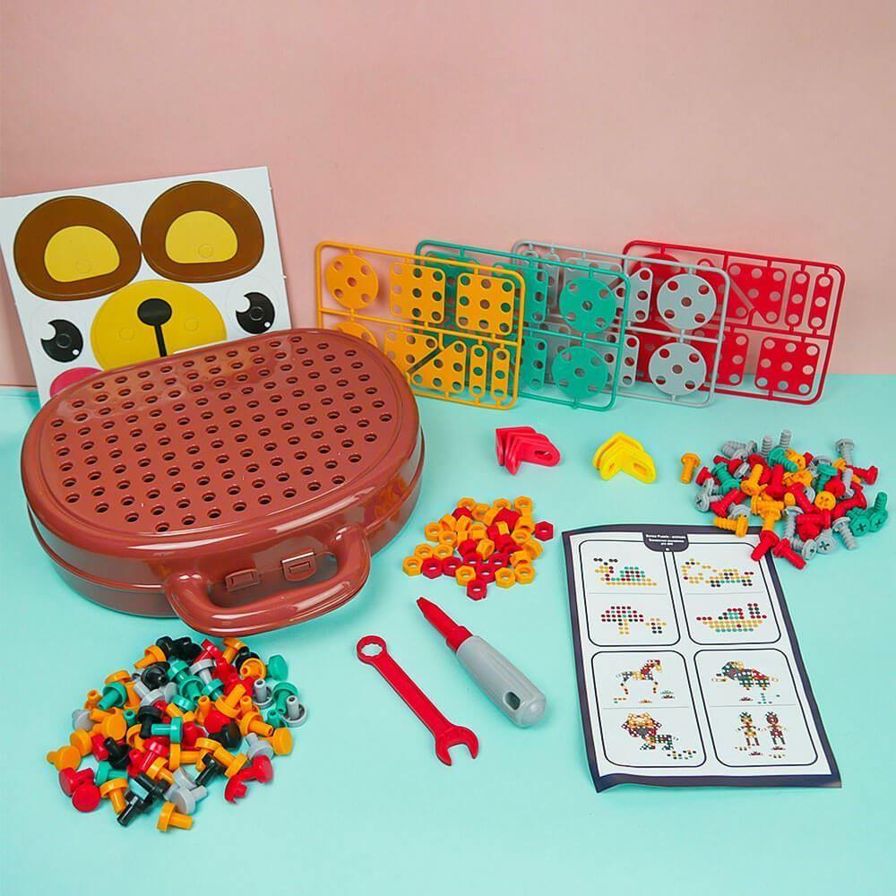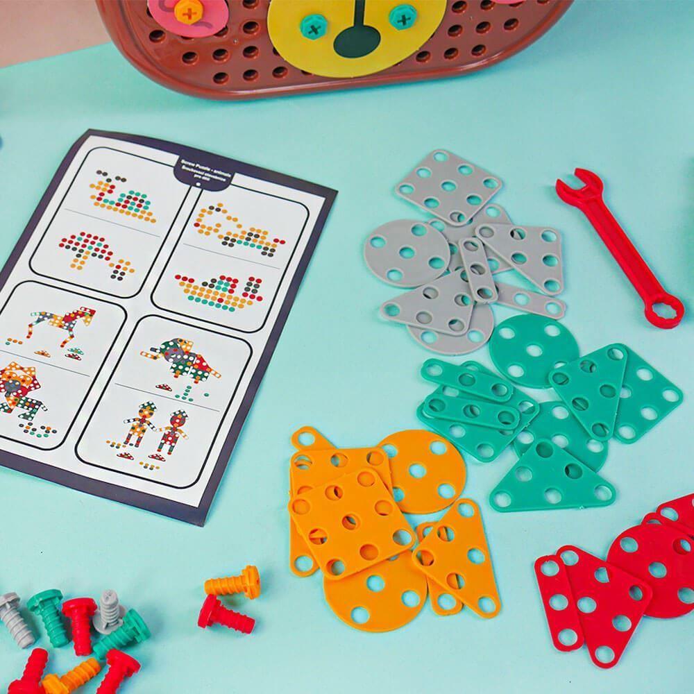 Căutați o jucărie care să distreze copiii și, în același timp, să le stimuleze dezvoltarea? Setul de construcție cu șuruburi pentru copii este un instrument excelent pentru a le dezvolta motricitatea fină și abilitățile tehnice. Cu acest set de construcții, pot crea diverse forme și construcții folosind șuruburi și unelte, ceea ce le stimulează creativitatea și imaginația. În pachet găsesc și un manual cu modele care îi poate ajuta să creeze diferite opere cu șuruburi.