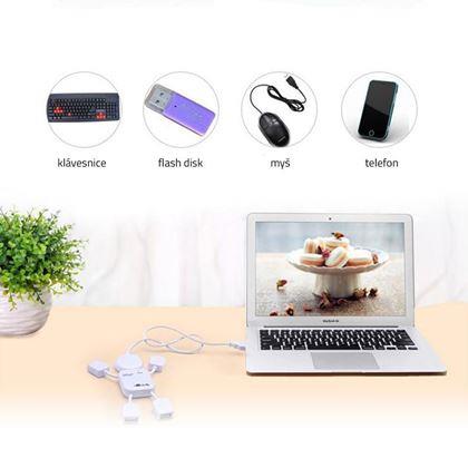 Aveți un hard disk, imprimantă, mouse, cablu de încărcare conectate la calculator și porturile USB nu vă mai sunt suficiente? Rezolvați această problemă foarte simplu cu un mini-omuleț USB. După ce îl conectați la PC, veți obține datorită lui încă 4 porturi USB. Nu trebuie să instalați nimic, doar conectați mini-omulețul la PC. Viteza de transfer a datelor este de 480 Mbps. Mini-omulețul USB este compatibil cu USB 2.0 și USB 1.1. La el se pot conecta imprimantă, mp4, mp3, aparat foto, mouse, mobil sau hard disk.