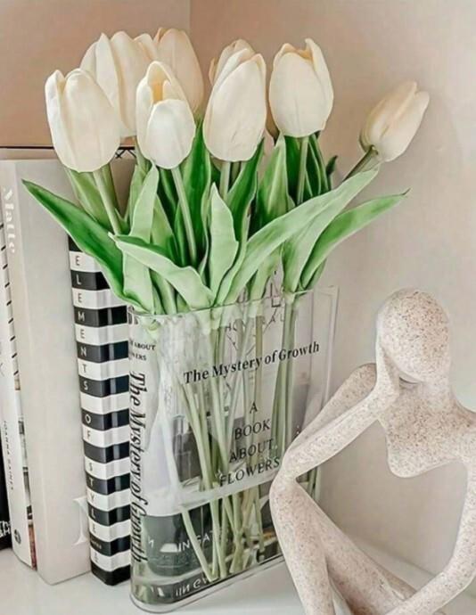 Iubești să citești cărți din diverse genuri? Îți plac decorațiunile neobișnuite? Dacă ai răspuns cu „da” la cel puțin una dintre aceste întrebări, atunci nu trebuie să ratezi această minunată vază în formă de carte! Primul lucru care te va impresiona este designul său minimalist, care face să pară că una dintre cărțile tale s-a transformat într-un obiect decorativ din cristal. Se potrivește perfect în orice interior și, în plus, oferă o notă proaspătă aspectului camerei. Fie că preferi flori tăiate, flori care nu se ofilesc niciodată sau flori uscate, cu această vază vei aduce un plus de rafinament oricărui colțișor. Tot ce trebuie să faci este să alegi ce vei pune în vază și să găsești locul în care să o expui – pe birou, pe o etajeră sau chiar între celelalte cărți din bibliotecă? Un lucru este sigur – oriunde vei așeza această vază, va ieși în evidență și va atrage privirile tuturor.